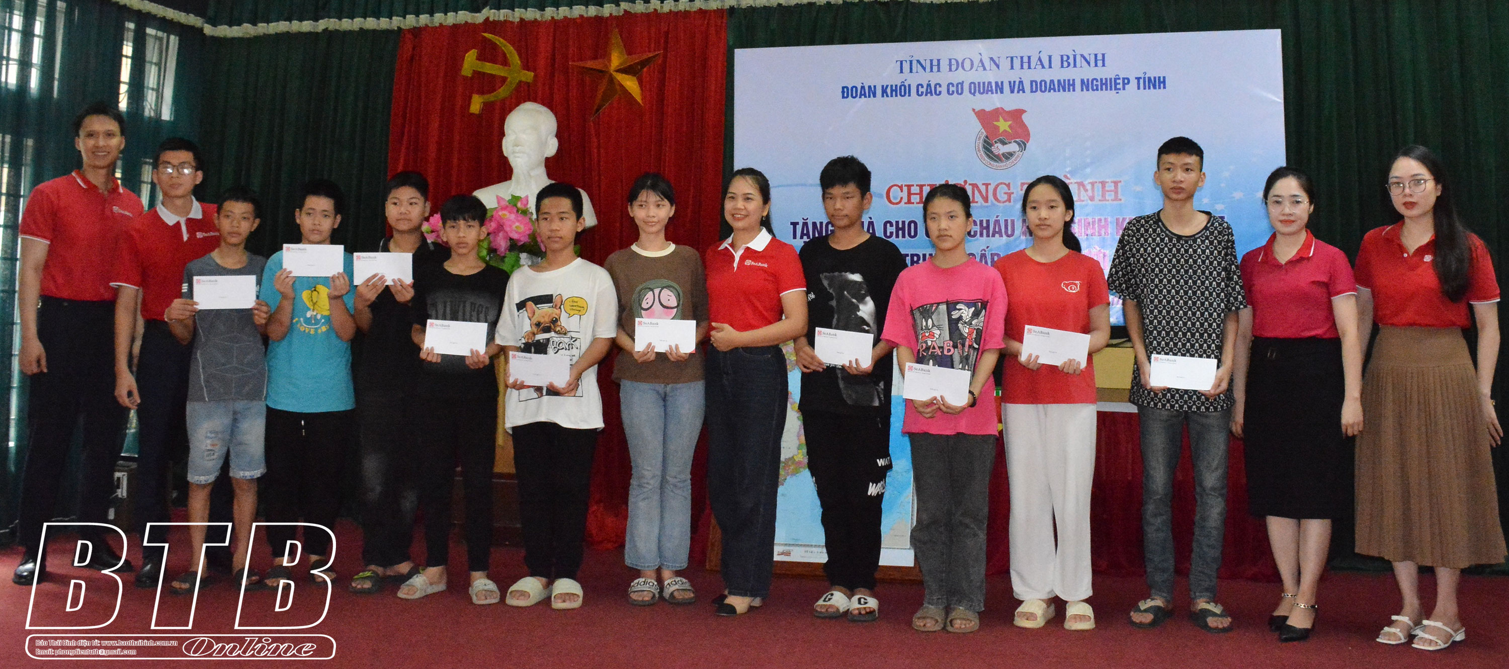 Đoàn Thanh niên Khối Các cơ quan và Doanh nghiệp tỉnh đã trao hơn 270 phần quà, Ngân hàng TMCP Đông Nam Á chi nhánh Thái Bình (SeABank Thái Bình) trao 50 suất quà cho các em học sinh khuyết tật của nhà trường.