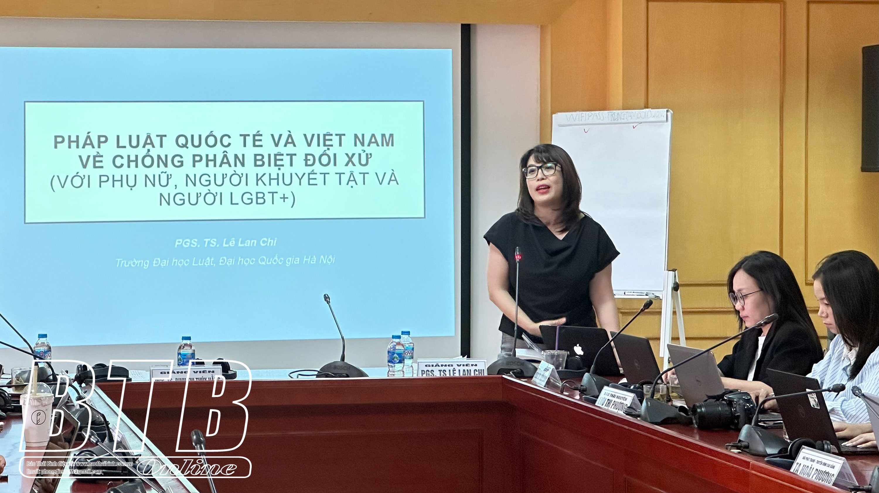 Phó giáo sư, Tiến sĩ Lê Lan Chi, Chủ nhiệm Khoa Tư pháp hình sự, Trường Đại học Luật, Đại học Quốc gia Hà Nội truyền đạt các nội dung tại khóa bồi dưỡng.