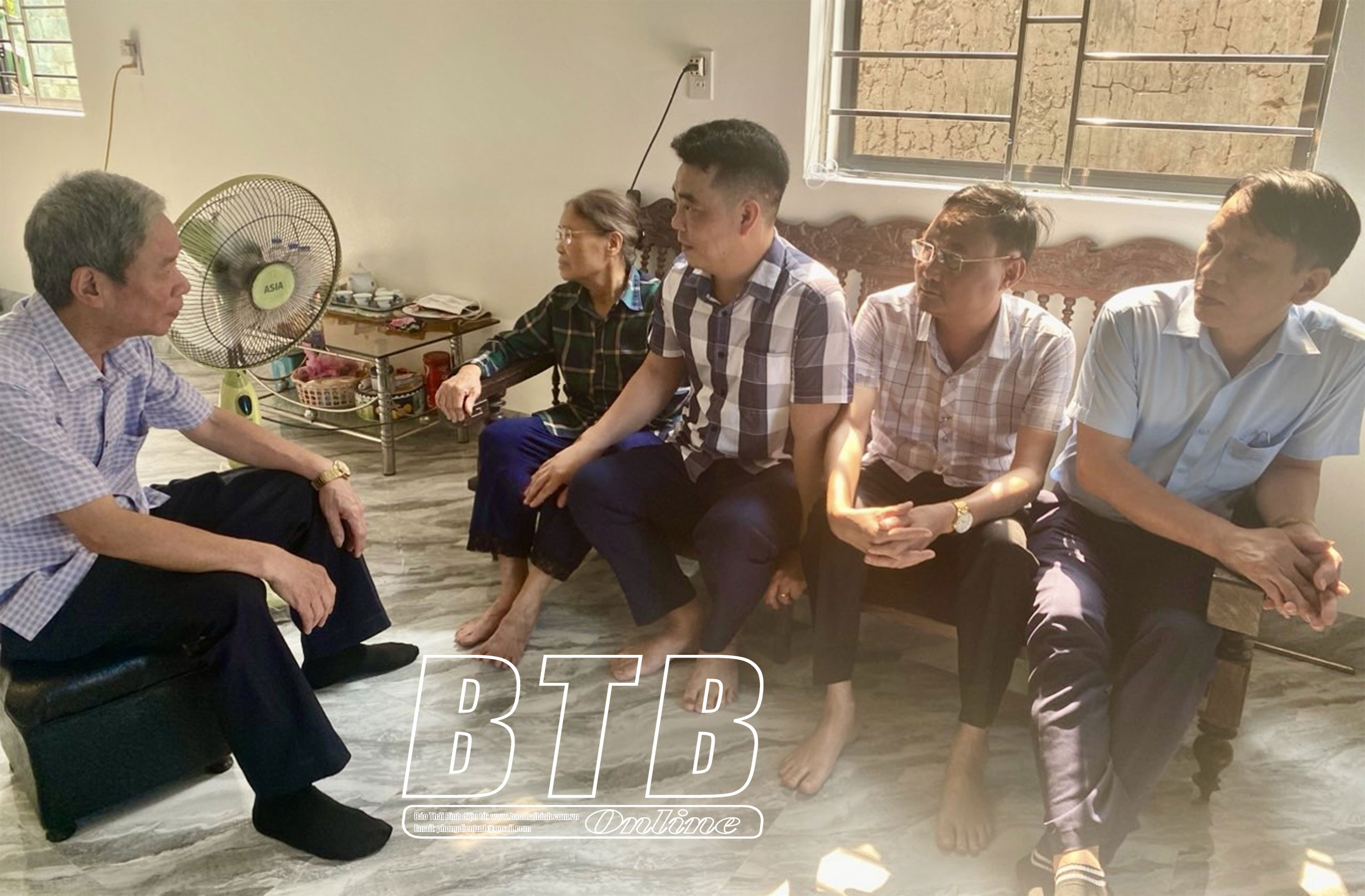 Lãnh đạo Sở Lao động - Thương binh và Xã hội cùng lãnh đạo xã đến thăm ngôi nhà mới được hỗ trợ xây dựng của bà Hà Thị Bún, thôn Vũ Đông, xã Thụy Xuân (Thái Thụy).