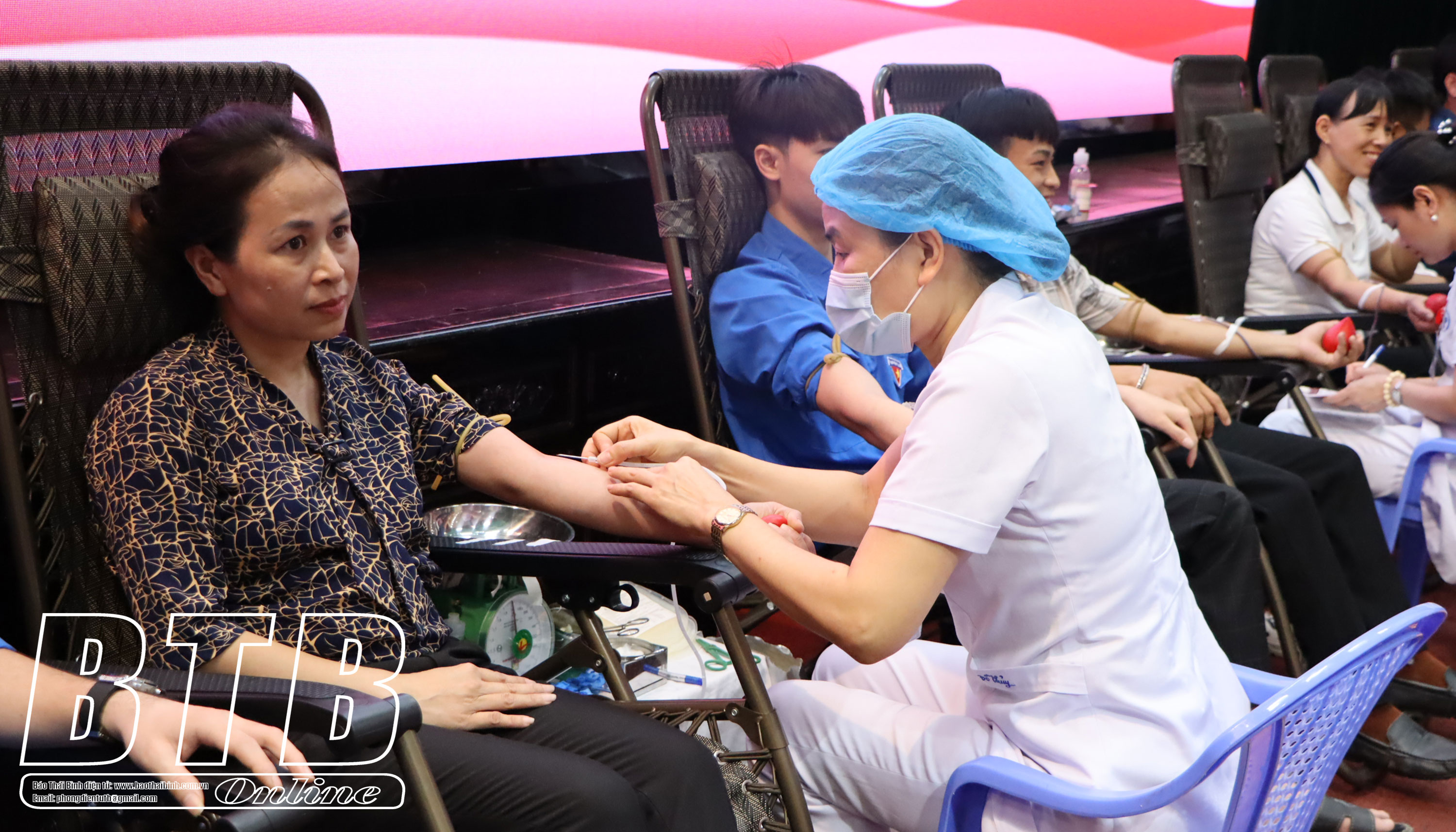 Các tình nguyện viên tham gia ngày hội hiến máu tình nguyện đợt 1 năm 2024 ở Kiến Xương.
