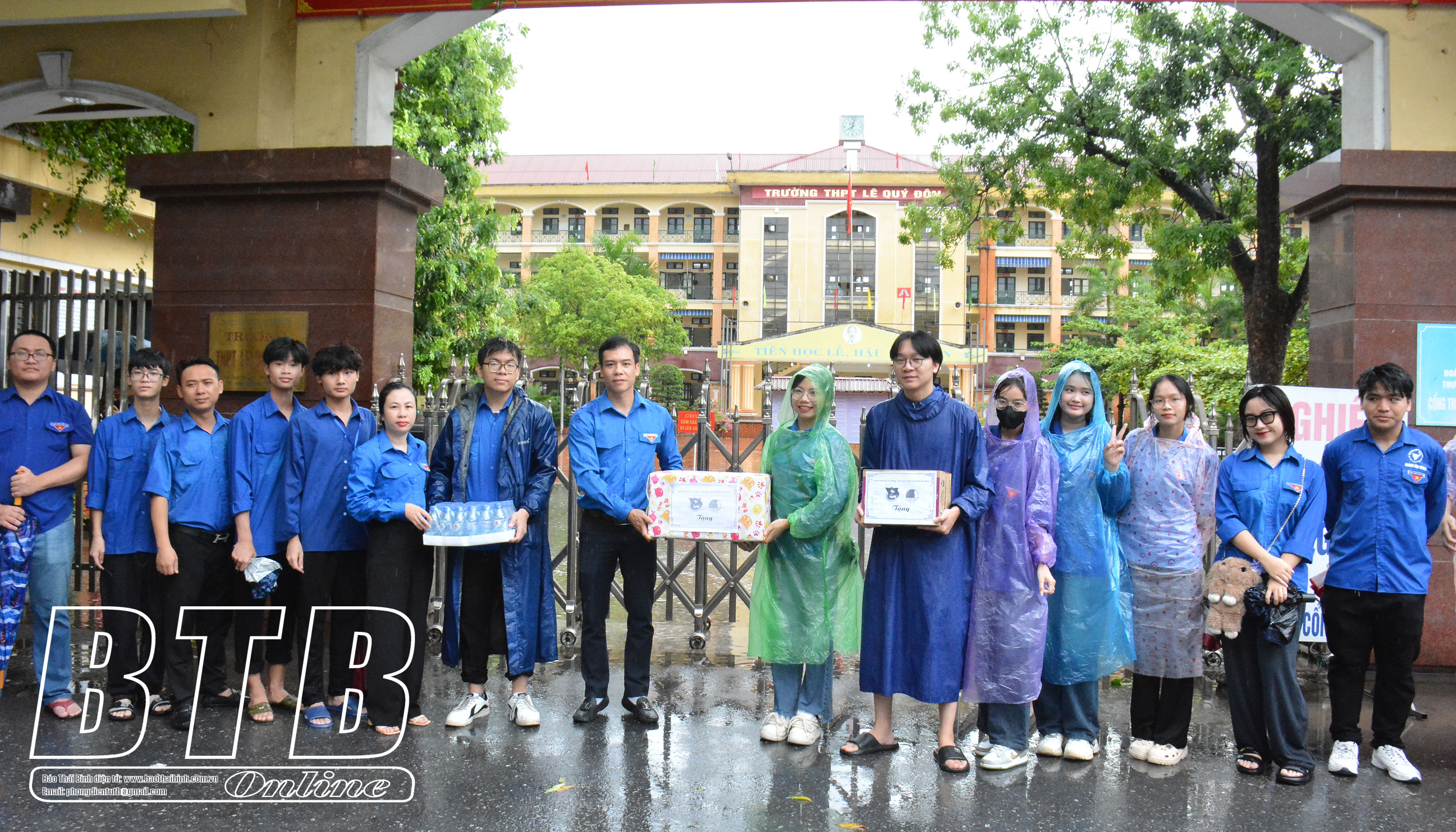 Lãnh đạo Tỉnh đoàn, Hội Liên hiệp Thanh niên tỉnh tặng quà đội thanh niên tình nguyện tiếp sức mùa thi tại điểm thi Trường THPT Quỳnh Côi.