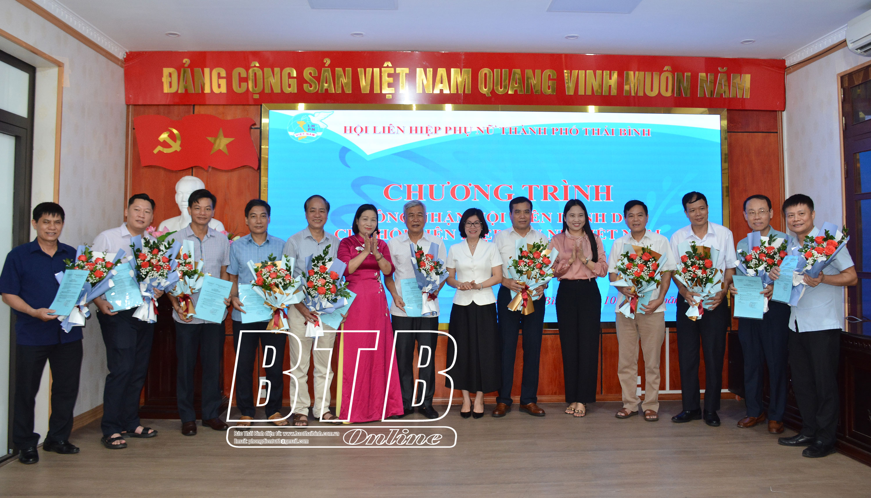 Lãnh đạo Hội Liên hiệp Phụ nữ tỉnh, lãnh đạo thành phố, Hội Liên hiệp Phụ nữ thành phố Thái Bình trao quyết định công nhận và tặng hoa chúc mừng hội viên danh dự.