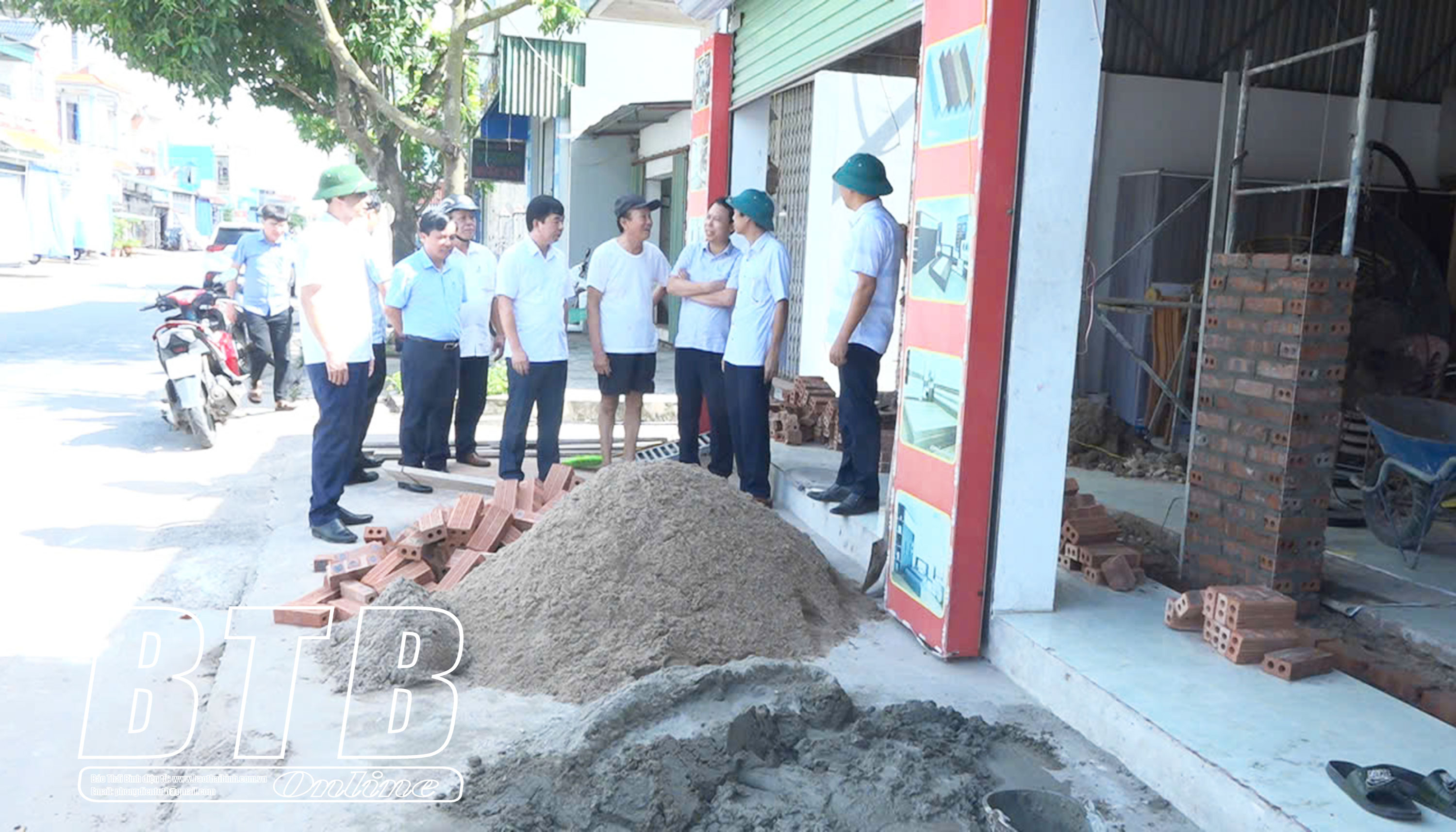 Lãnh đạo huyện Tiền Hải kiểm tra việc hiến đất làm đường tại xã Đông Cơ.