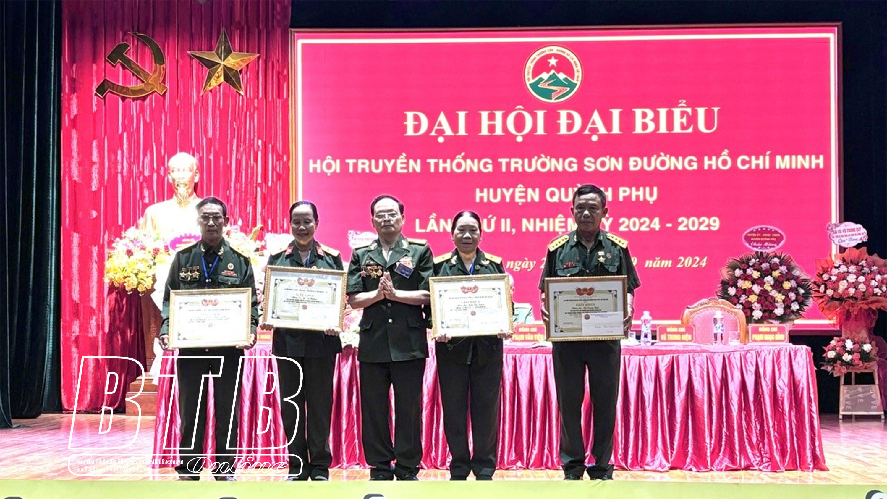 Lãnh đạo Hội Truyền thống Trường Sơn đường Hồ Chí Minh tỉnh, lãnh đạo huyện Quỳnh Phụ chúc mừng Ban Chấp hành Hội Truyền thống Trường Sơn đường Hồ Chí Minh huyện Quỳnh Phụ.