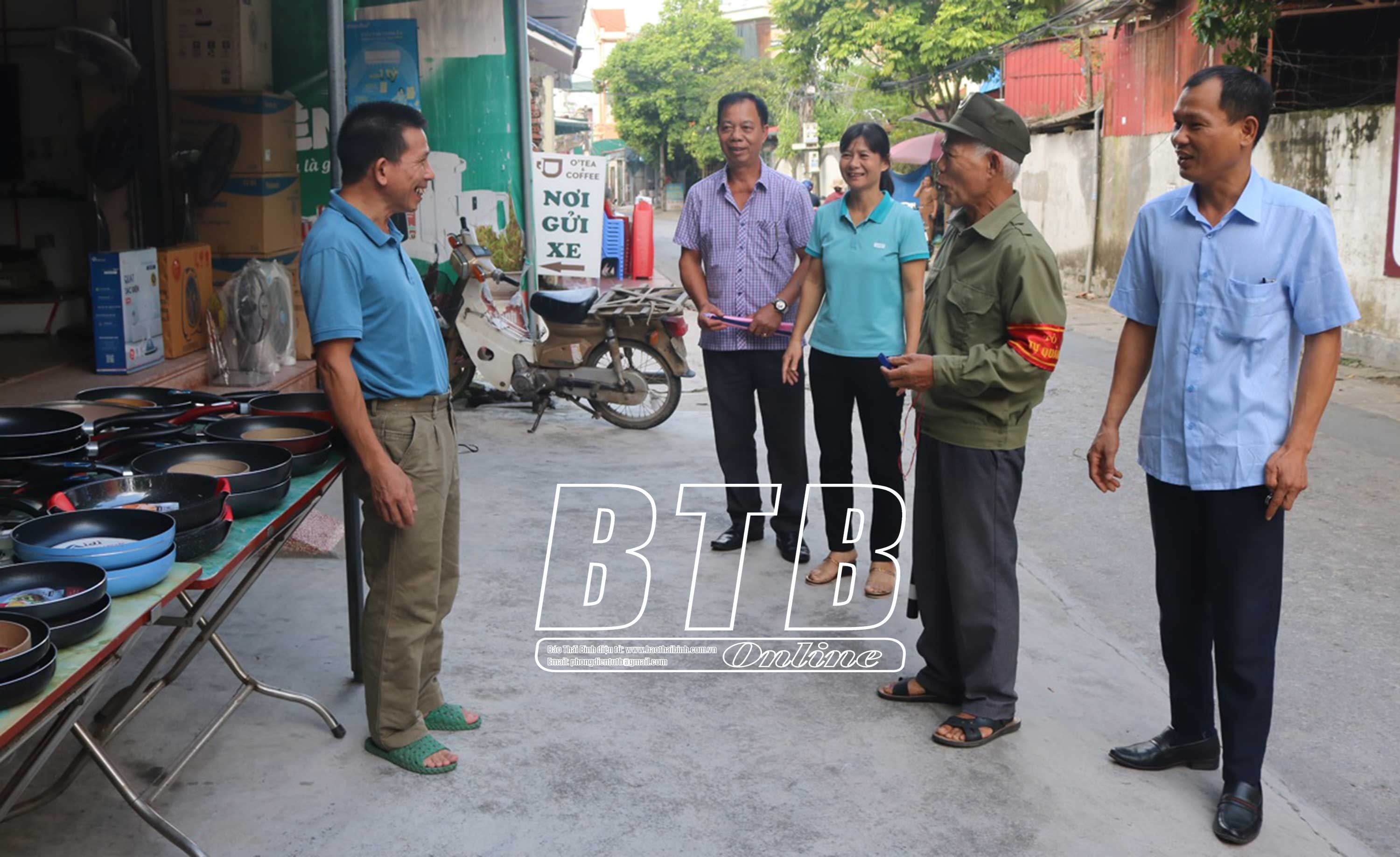 Cán bộ, hội viên cựu chiến binh Tổ dân phố Hùng Thắng (thị trấn Tiền Hải) vận động nhân dân chấp hành việc bảo đảm an ninh trật tự của địa phương.