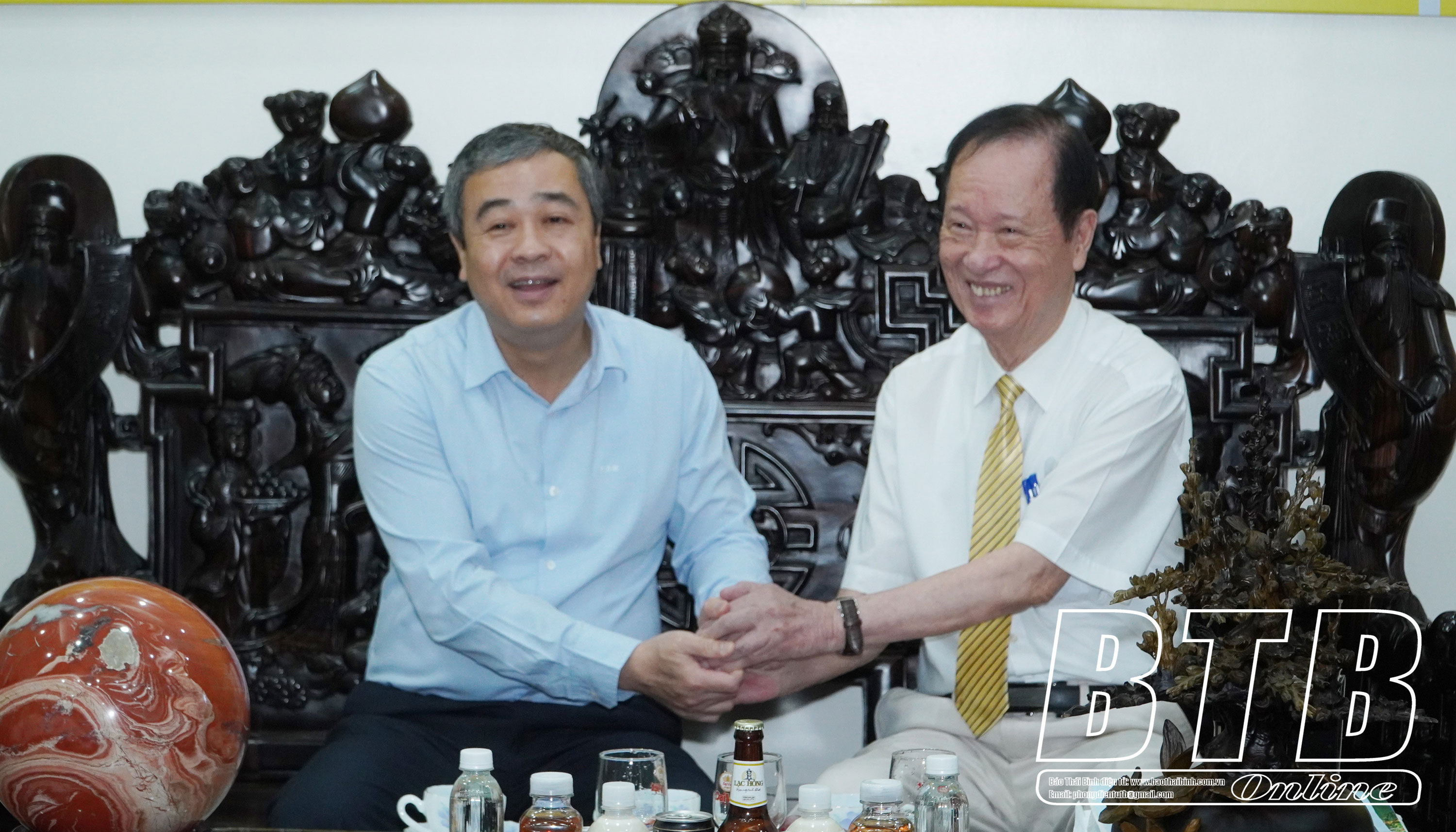 Đồng chí Ngô Đông Hải, Ủy viên Ban Chấp hành Trung ương Đảng, Bí thư Tỉnh ủy chúc mừng doanh nhân, nghệ nhân, Anh hùng Lao động Trần Văn Sen.