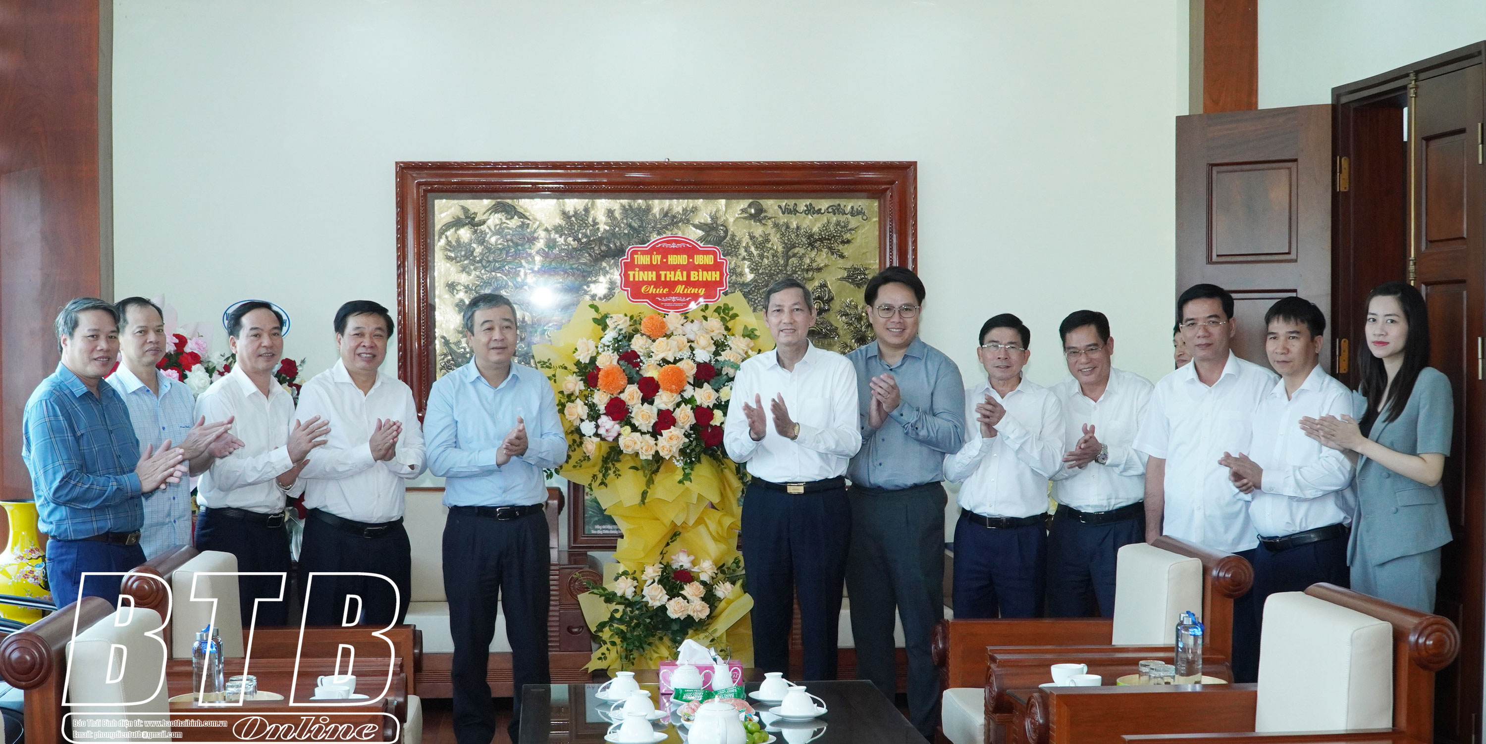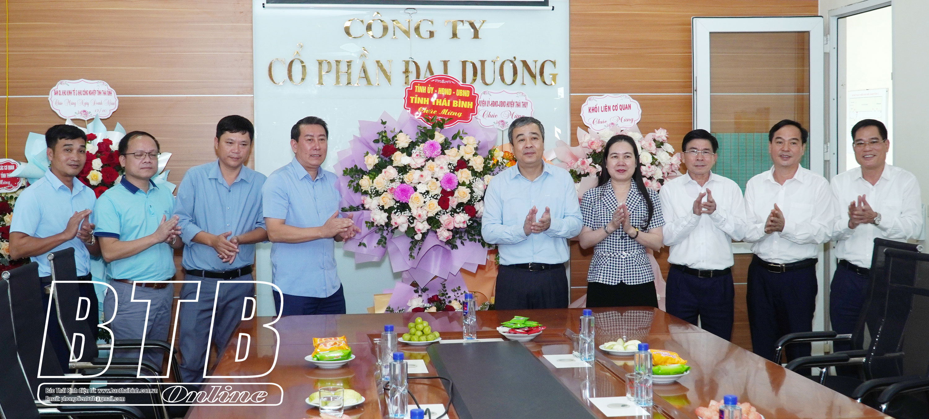 Đồng chí Bí thư Tỉnh ủy và các đồng chí lãnh đạo tỉnh chúc mừng cán bộ, công nhân Công ty Cổ phần Đại Dương (Thái Thụy).
