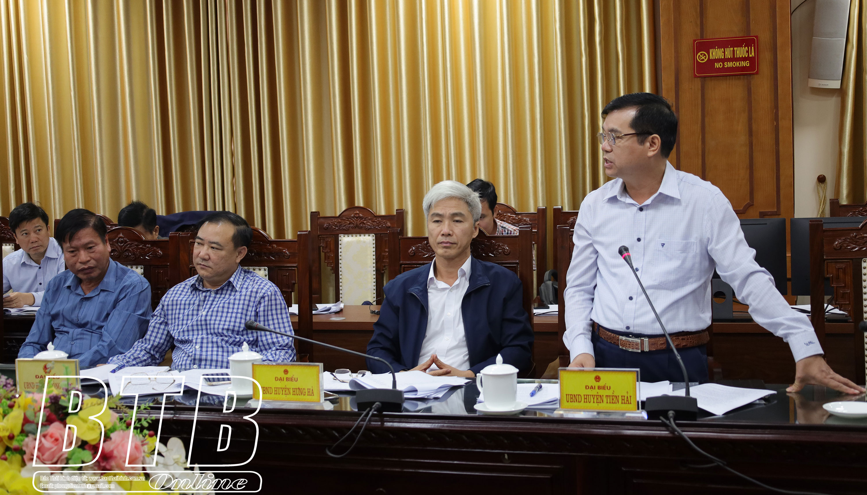 Lãnh đạo huyện Tiền Hải phát biểu tại cuộc họp.