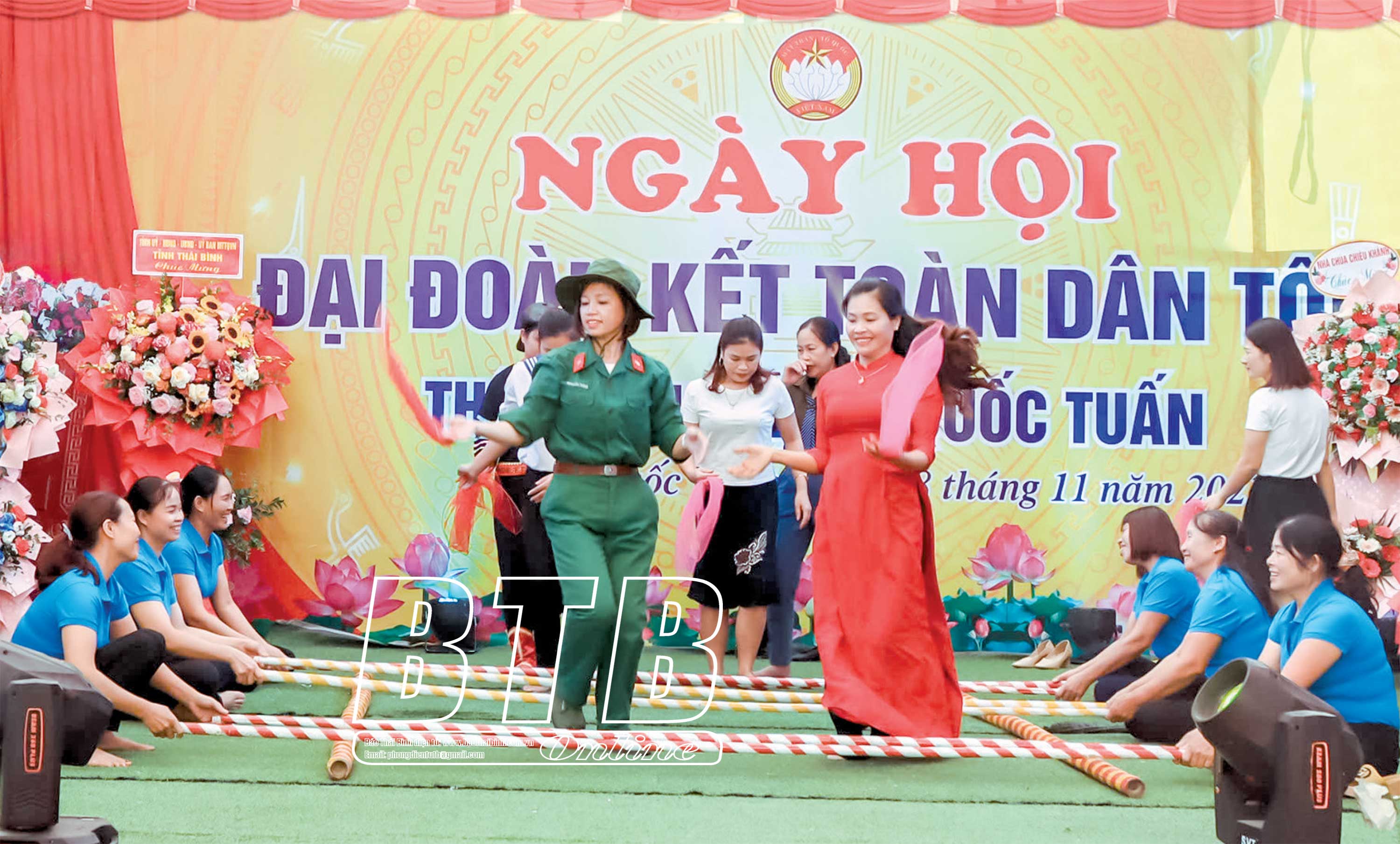 Người dân thôn Bích Kê, xã Quốc Tuấn tham gia biểu diễn các tiết mục văn nghệ trong ngày hội đại đoàn kết toàn dân tộc.
