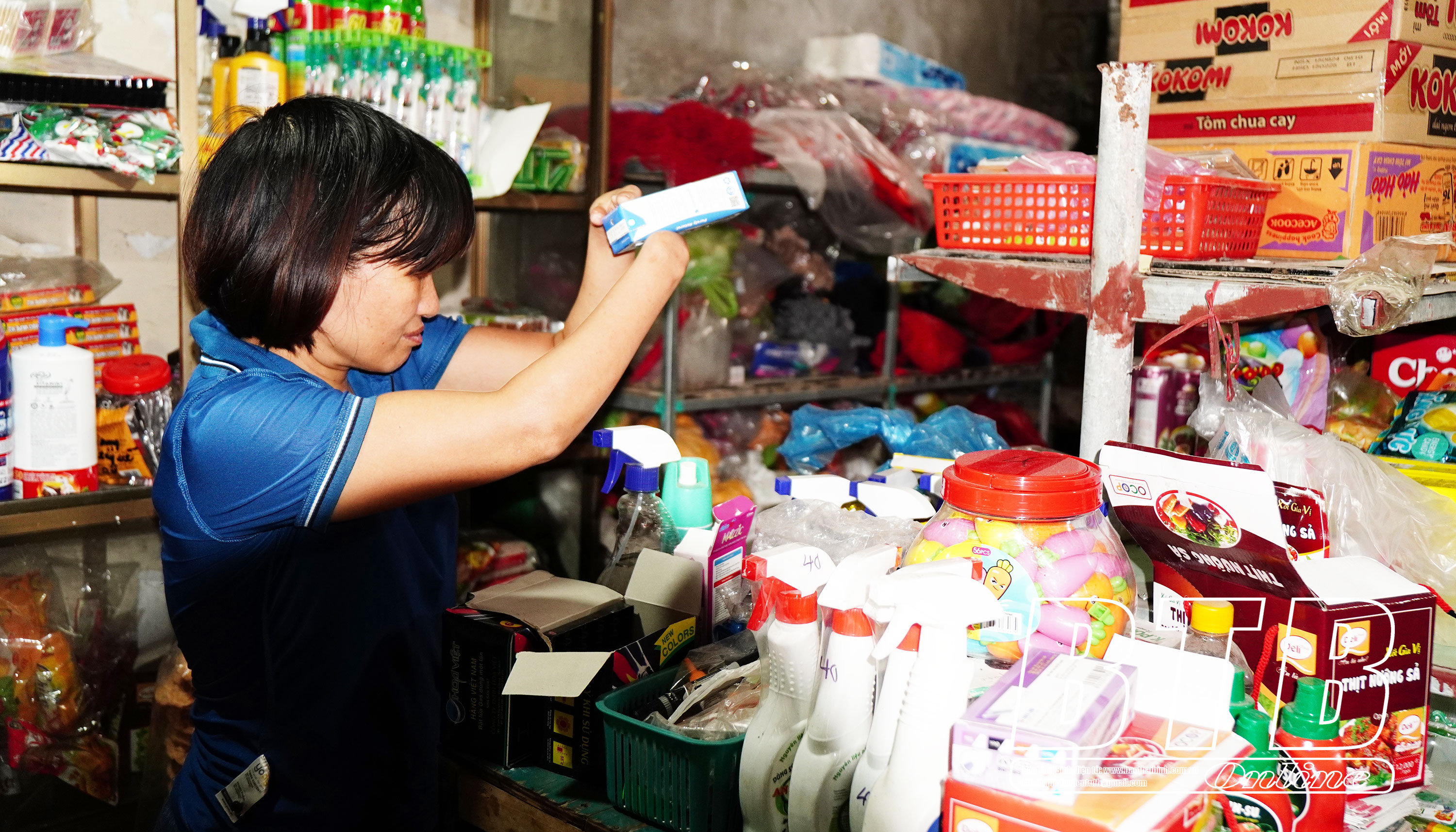 Chị Vương Thị Thương, thôn 5, xã Đô Lương (Đông Hưng) có thu nhập từ cửa hàng tạp hóa nhờ nguồn vốn vay của Hội Người khuyết tật tỉnh.