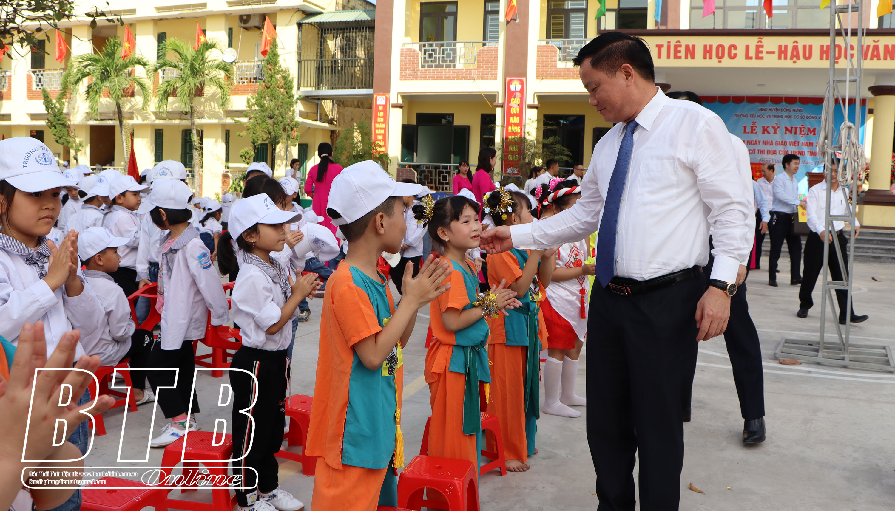 Đồng chí Nguyễn Khắc Thận, Phó Bí thư Tỉnh ủy, Chủ tịch UBND tỉnh chúc mừng ngày Nhà giáo Việt Nam tại Trường Tiểu học và THCS Đông Vinh
