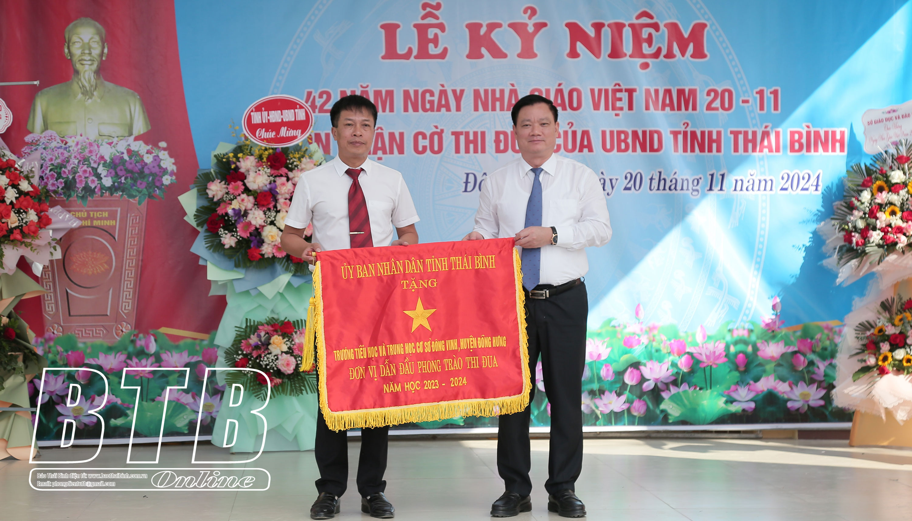 Nhân dịp này, đồng chí Phó Bí thư Tỉnh ủy, Chủ tịch UBND tỉnh đã trao cờ thi đua của UBND tỉnh cho Trường Tiểu học và THCS Đông Vinh; trao bằng khen của Chủ tịch UBND tỉnh cho 2 cán bộ, giáo viên của Trường có thành tích xuất sắc thời gian qua. Đồng chí mong muốn thời gian tới, thầy và trò nhà trường tiếp tục giữ vững phong trào thi đua “Dạy tốt - Học tốt” và gặt hái được nhiều thành công hơn nữa trong sự nghiệp “trồng người”, qua đó đóng góp vào thành tích chung của ngành giáo dục và đào tạo huyện Đông Hưng và của tỉnh Thái Bình.