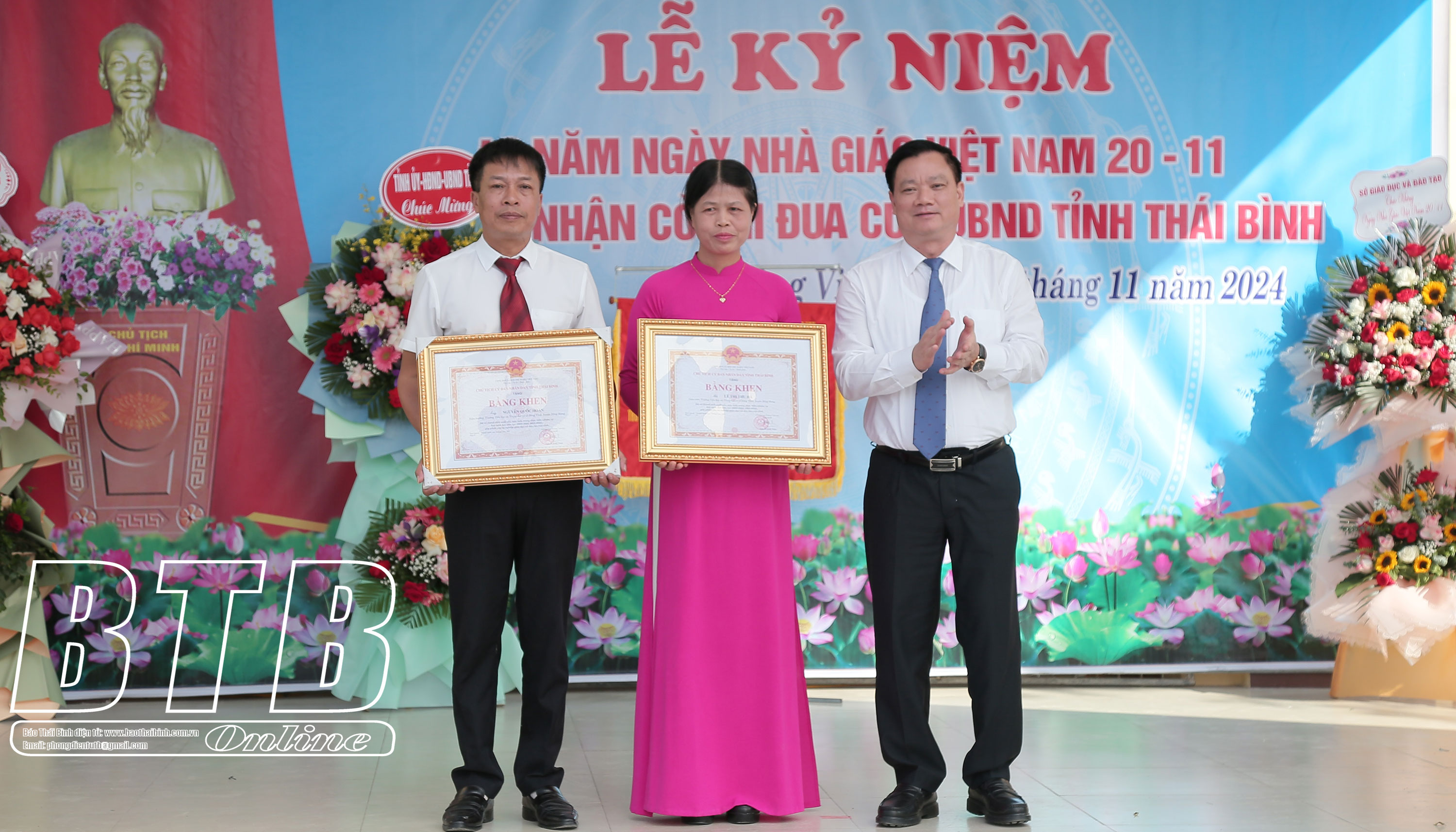 Tặng hoa chúc mừng cán bộ, giáo viên nhà trường, đồng chí Phó Bí thư Tỉnh ủy, Chủ tịch UBND tỉnh chúc mừng những kết quả cán bộ, giáo viên và học sinh nhà trường đạt được thời gian qua. Đồng chí gửi lời chúc sức khỏe tới các thế hệ thầy cô giáo nhà trường nhân ngày Nhà giáo Việt Nam.