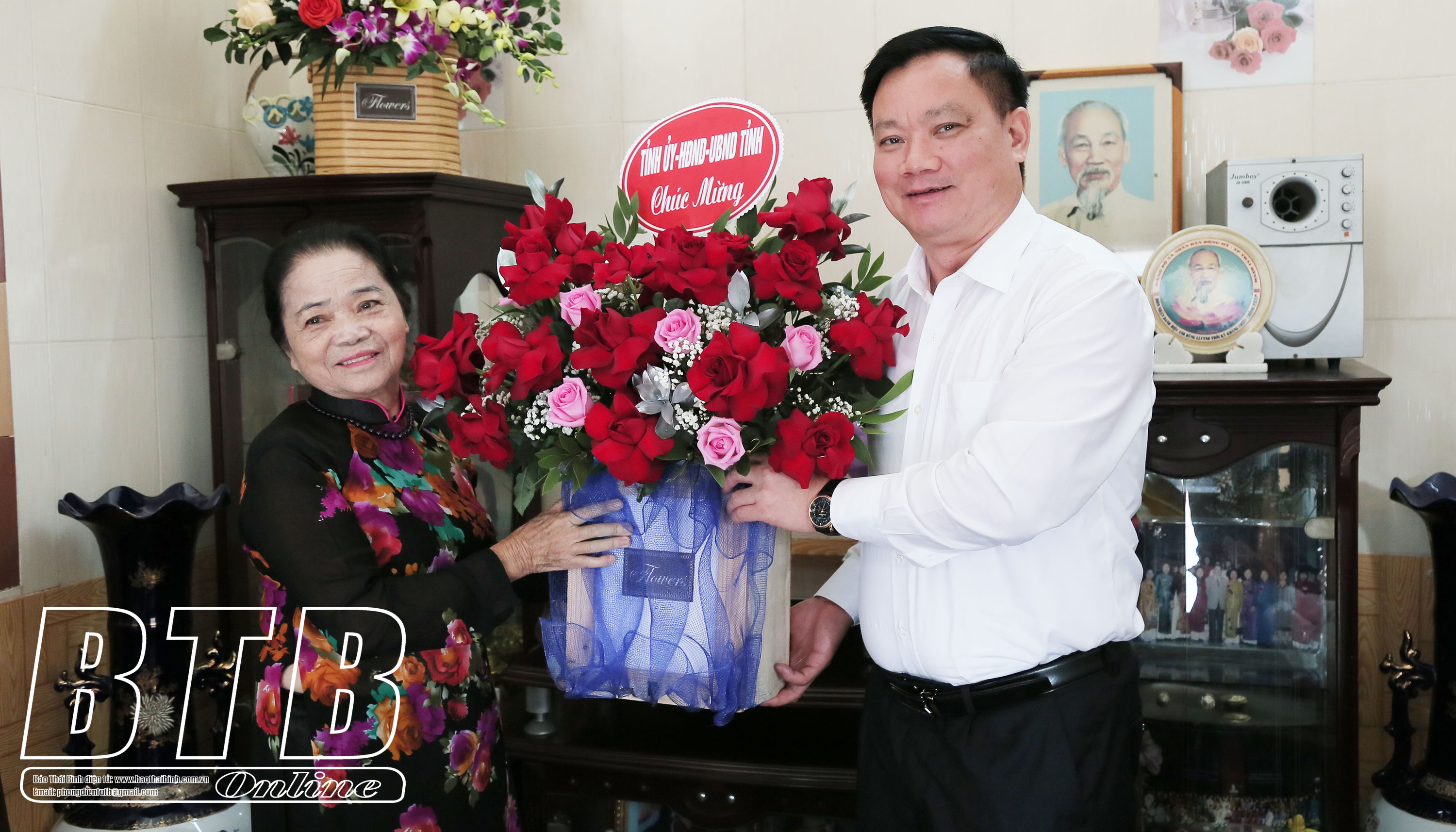Tặng hoa chúc mừng Nhà giáo ưu tú Vũ Như Quân nhân ngày Nhà giáo Việt Nam, đồng chí Phó Bí thư Tỉnh ủy, Chủ tịch UBND tỉnh chúc nhà giáo và gia đình luôn mạnh khỏe, luôn là tấm gương sáng cho các thế hệ giáo viên, học sinh noi theo.