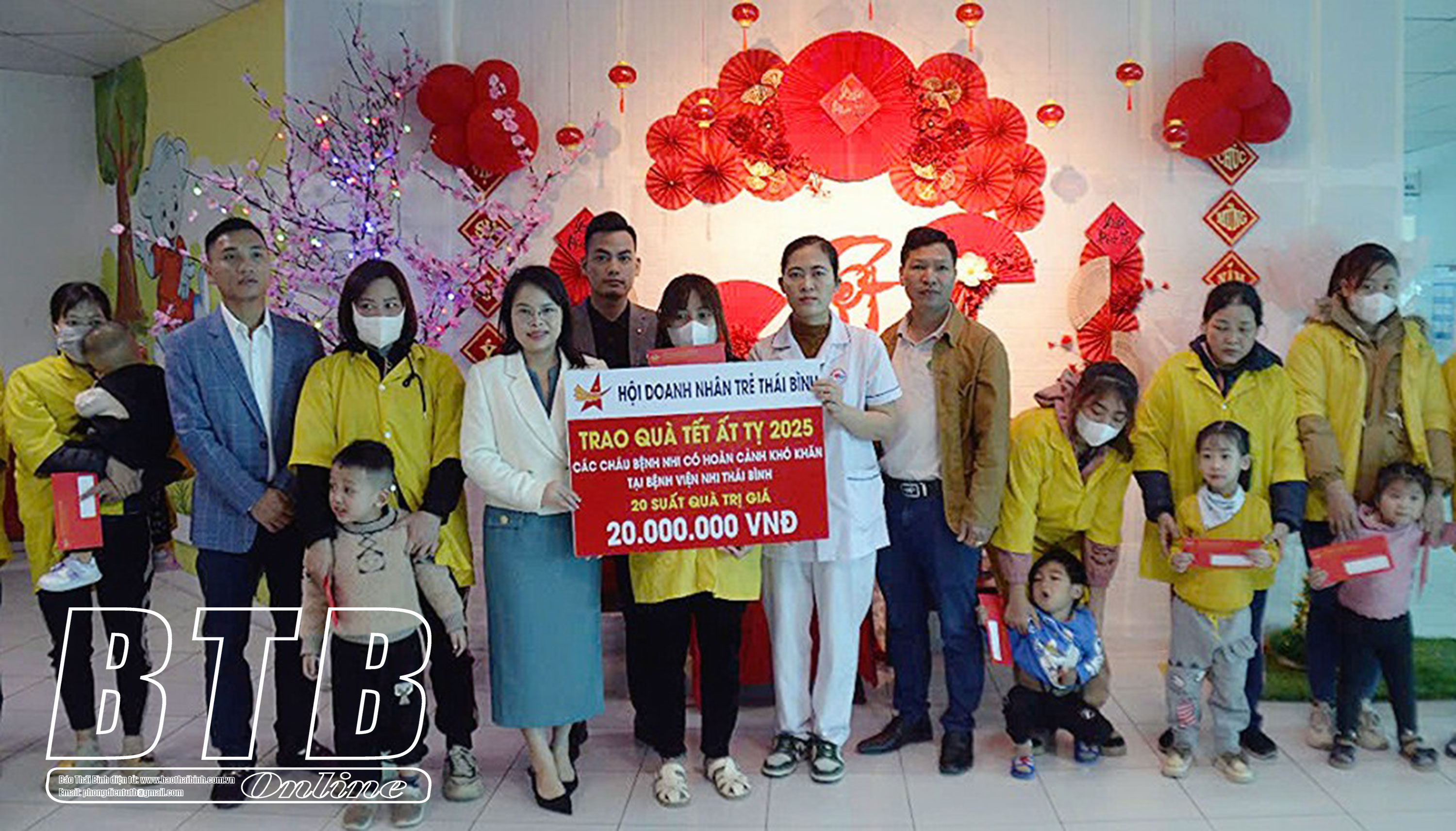 20 suất quà tết (mỗi suất trị giá 1 triệu đồng) được trao cho bệnh nhi nặng có hoàn cảnh khó khăn, trong đó có những bệnh nhi nhiều năm phải điều trị hồi sức tích cực tại Bệnh viện Nhi Thái Bình nhằm chia sẻ giúp bệnh nhi vượt lên nỗi đau bệnh tật.