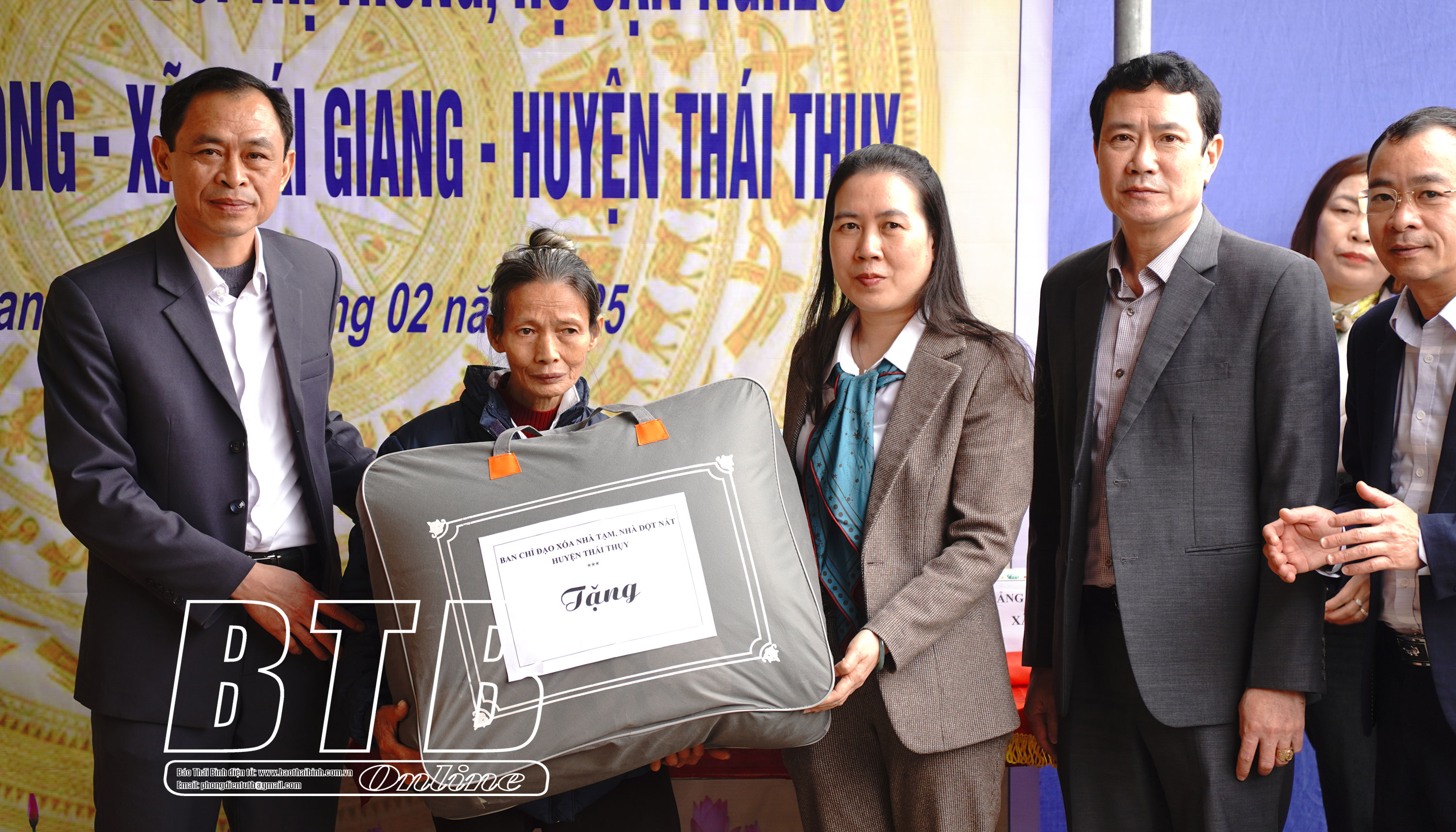 Tại lễ khánh thành, đồng chí Phó Chủ tịch thường trực UBND tỉnh cùng lãnh đạo huyện Thái Thụy và đại diện các ban, ngành, đoàn thể của địa phương đã trao tặng nhiều phần quà thiết thực giúp bà Bùi Thị Thông vượt qua khó khăn, vươn lên trong cuộc sống.