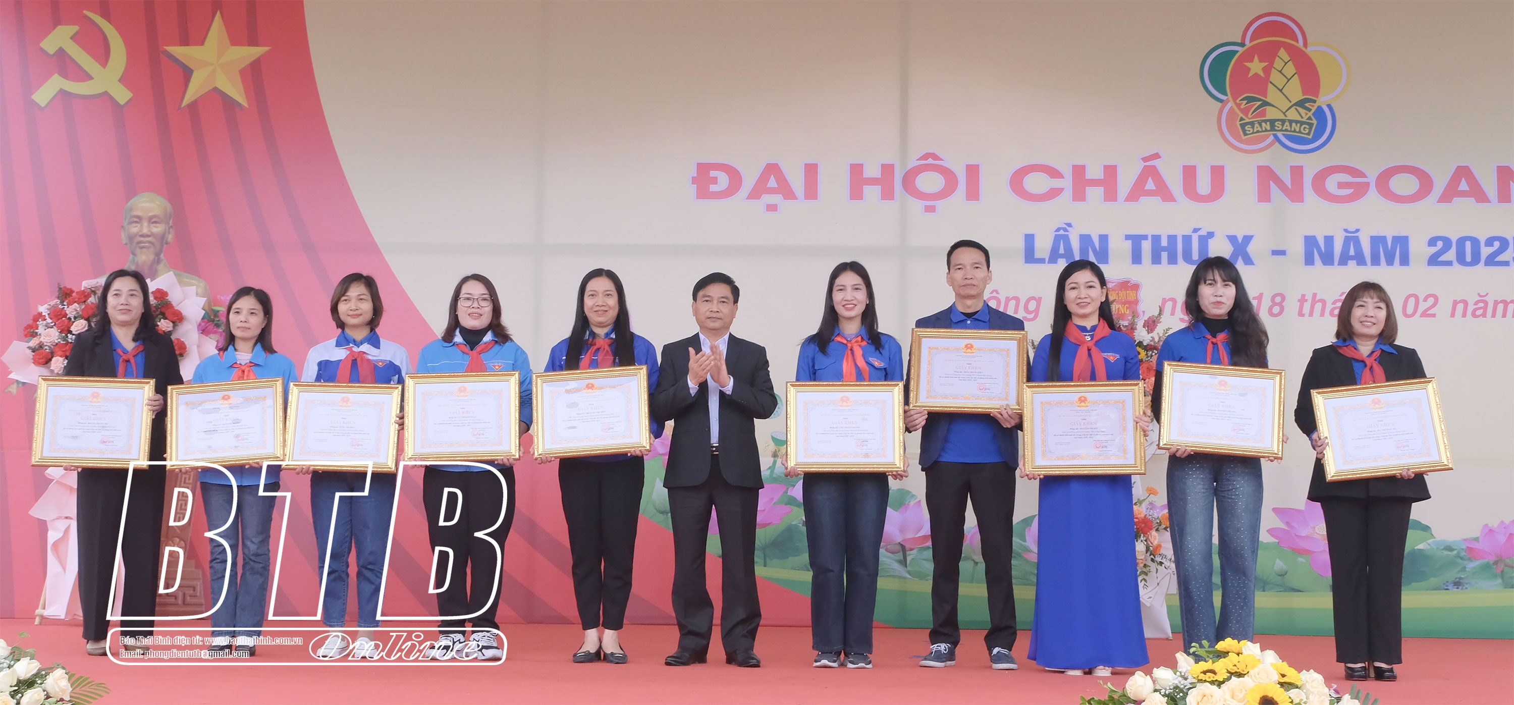 Tại đại hội đã trao giấy khen của UBND huyện cho 10 giáo viên tổng phụ trách tiêu biểu; trao 8 suất học bổng “Thắp sáng ước mơ” cho các em học sinh có hoàn cảnh khó khăn vươn lên trong học tập; biểu dương, khen thưởng 20 đội viên có thành tích xuất sắc, tích cực tham gia các phong trào, hoạt động đội.