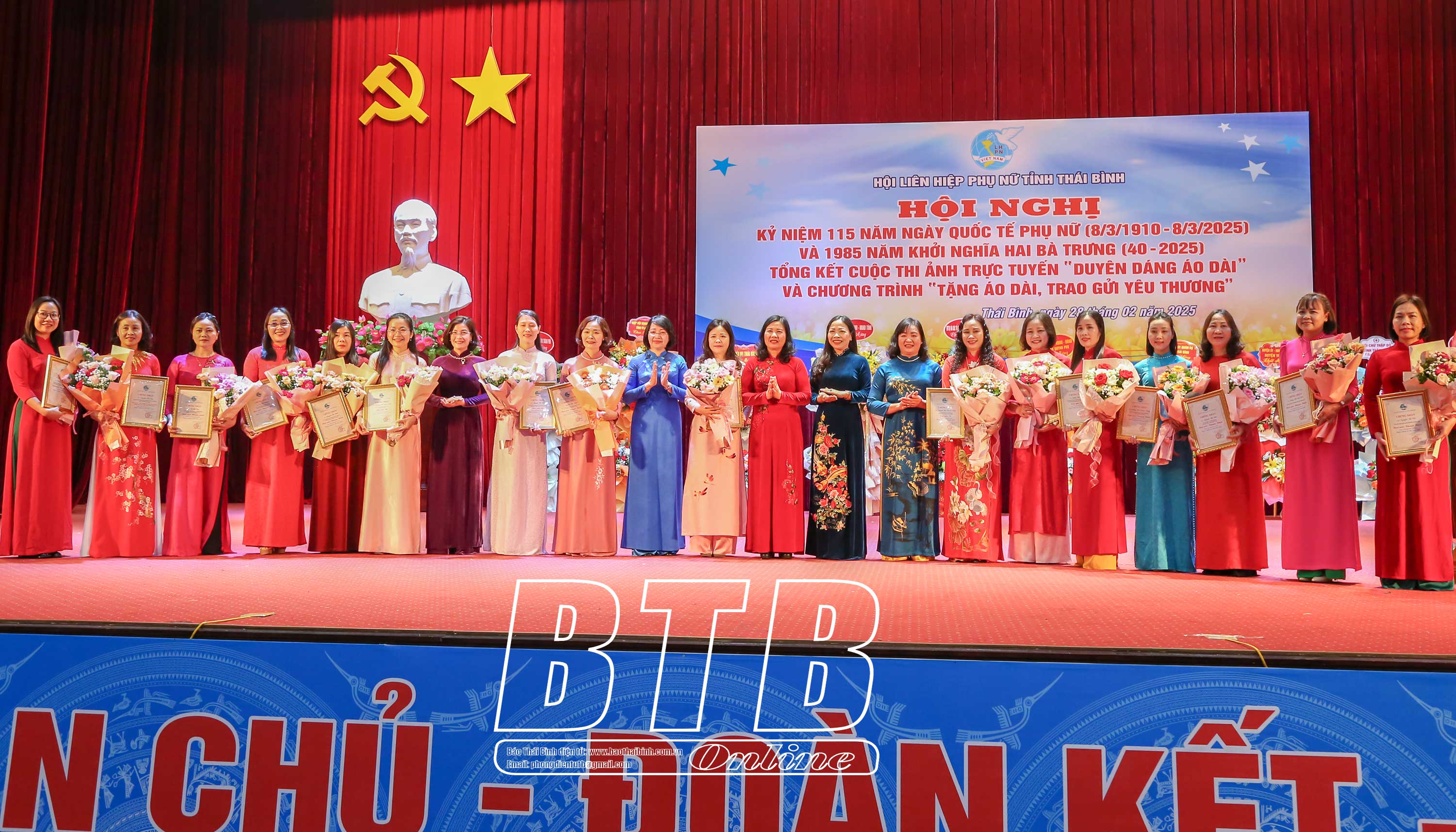 Tại buổi lễ, Ban tổ chức đã tổng kết và trao giải cuộc thi ảnh trực tuyến với chủ đề “Duyên dáng áo dài” dành cho cán bộ hội các cấp năm 2025. Theo đó có 52 tác phẩm cá nhân và 19 tác phẩm tập thể đạt giải trong tổng số 1.386 tác phẩm dự thi.