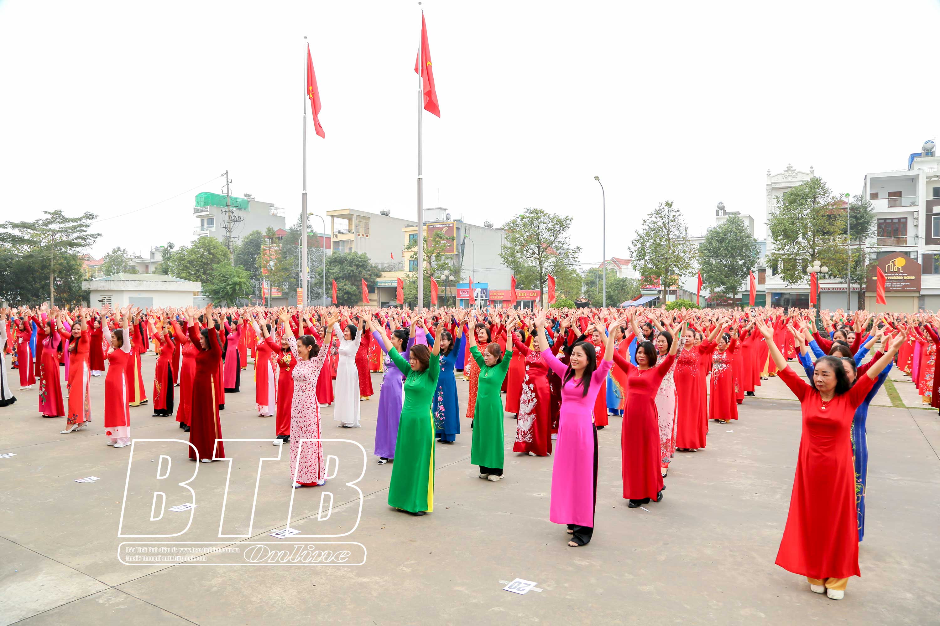 Nhân dịp này, hơn 1.000 cán bộ, hội viên, phụ nữ tham gia chương trình đồng diễn dân vũ và diễu hành trang phục áo dài.