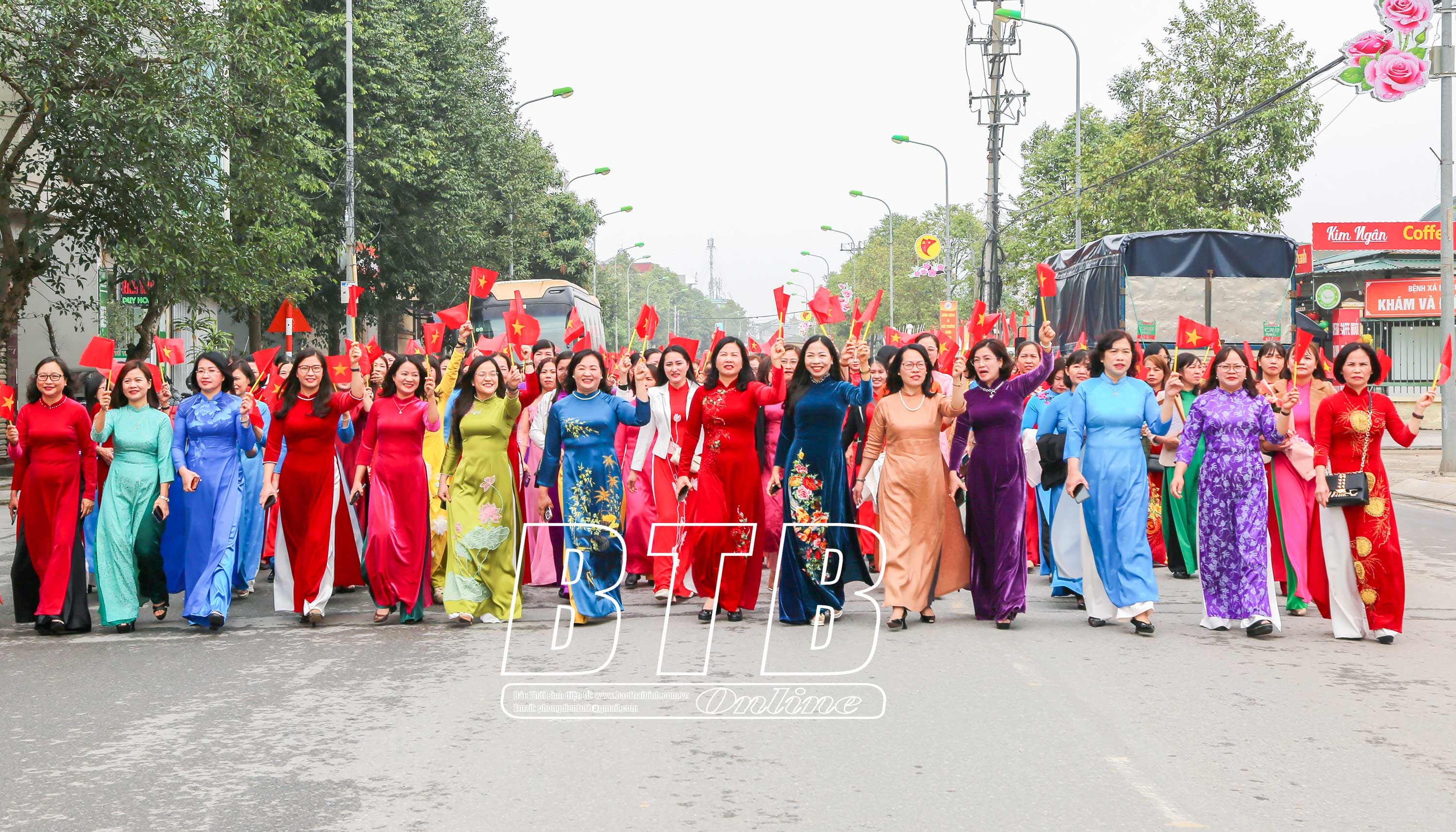 Cán bộ, hội viên Hội Liên hiệp Phụ nữ tỉnh diễu hành tôn vinh vẻ đẹp của áo dài Việt Nam.