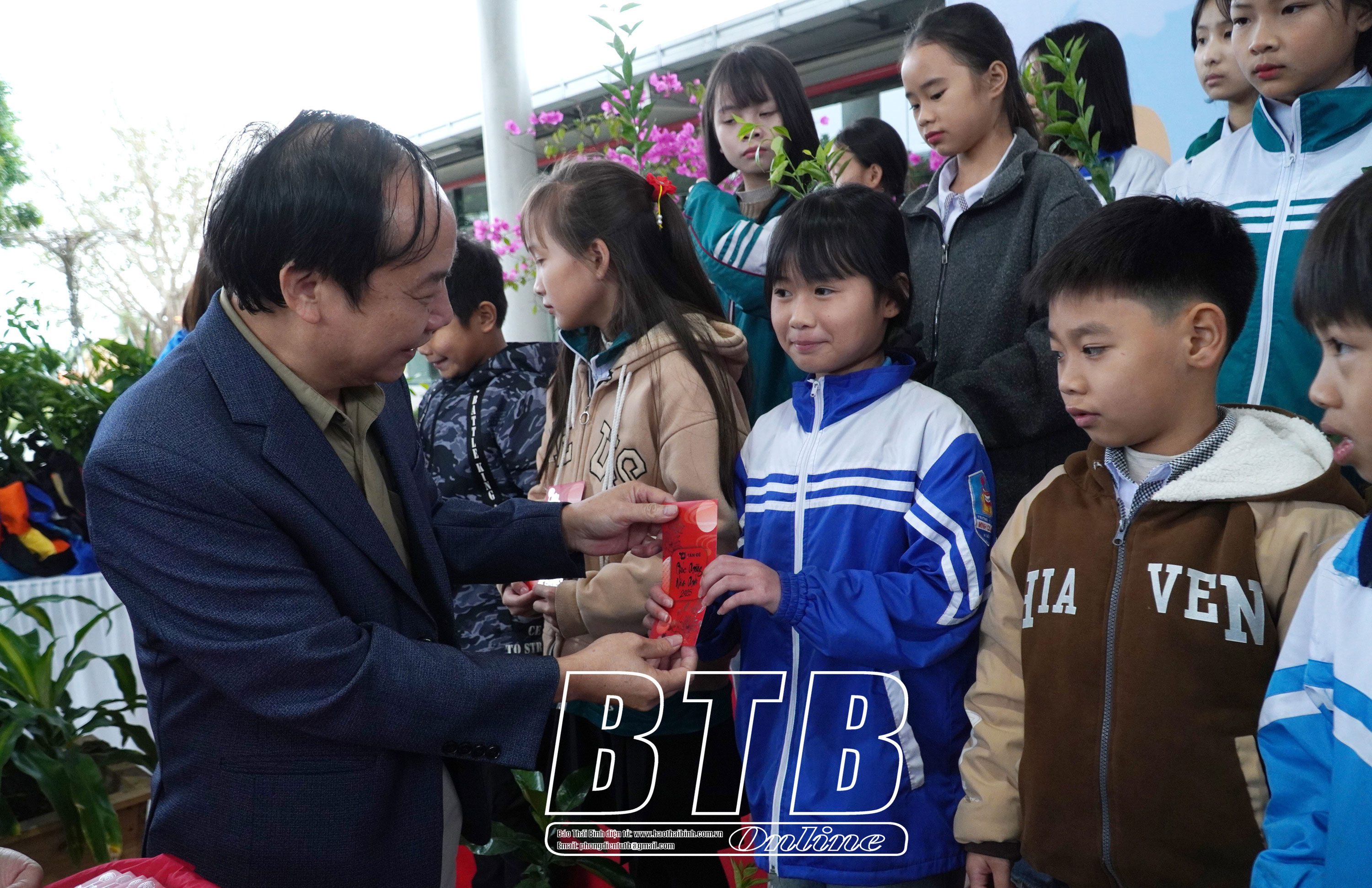 Lãnh đạo Công ty Tân Đệ trao quà, giải thưởng cho các em.
