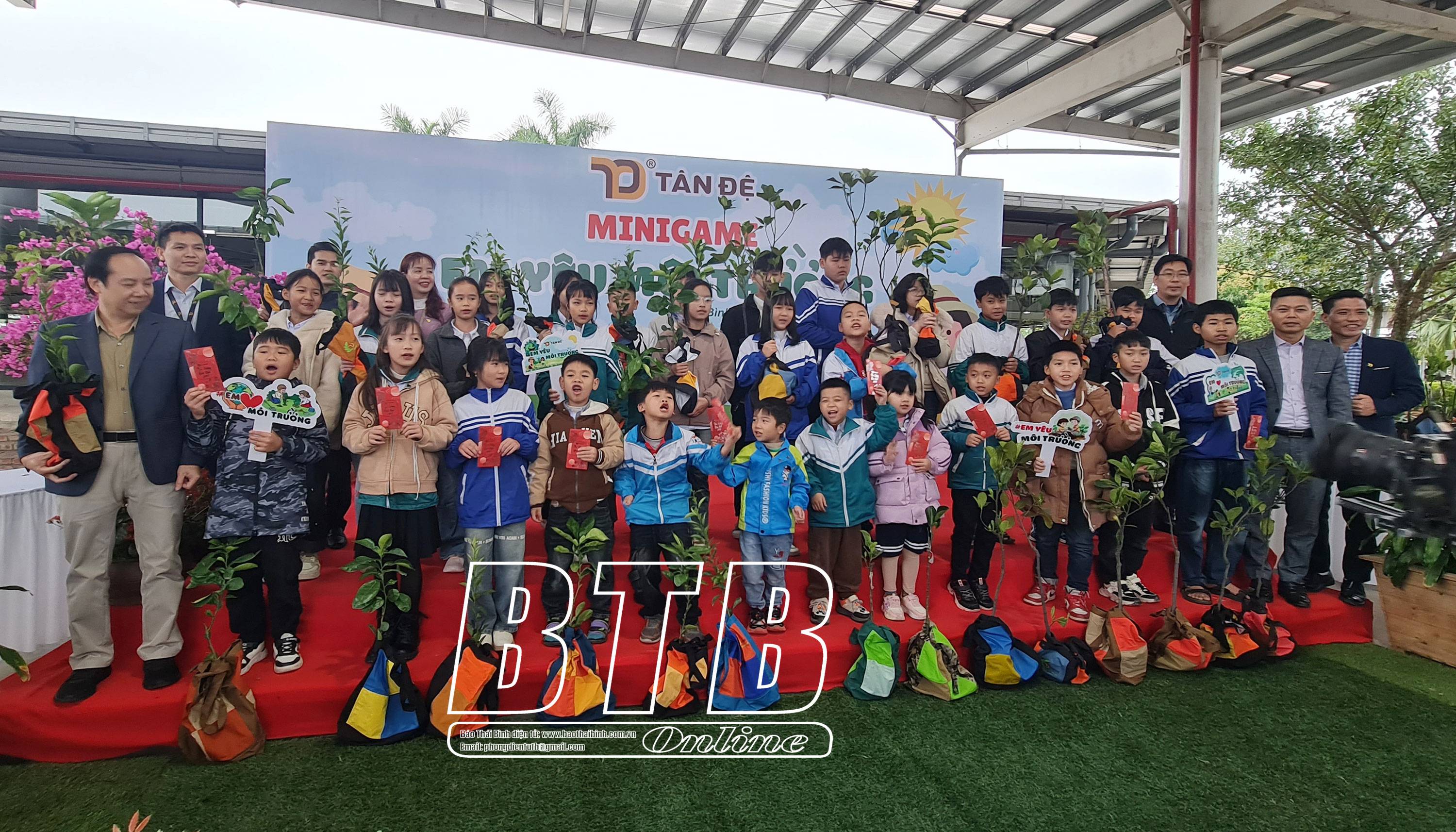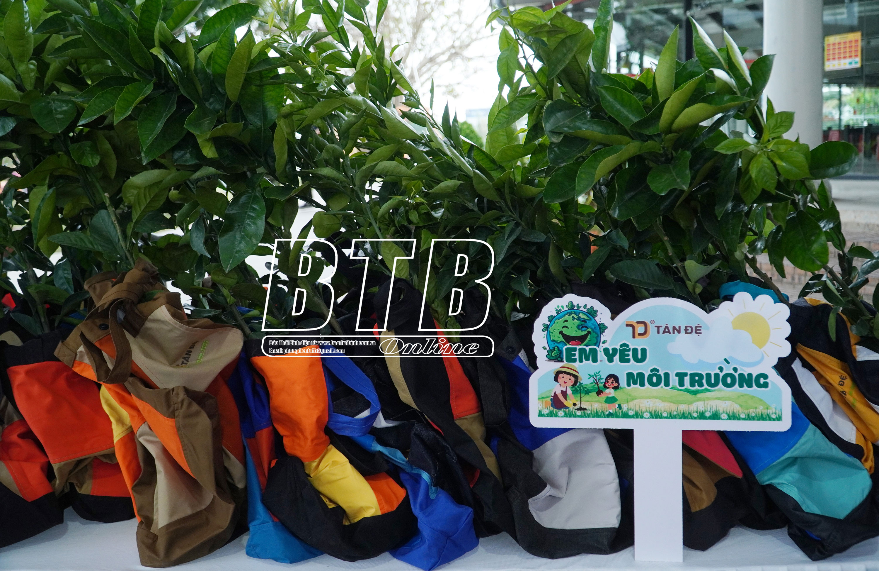 Tất cả các cây giống trao tặng cho các em nhỏ được đựng trong túi môi trường của Công ty Tân Đệ.