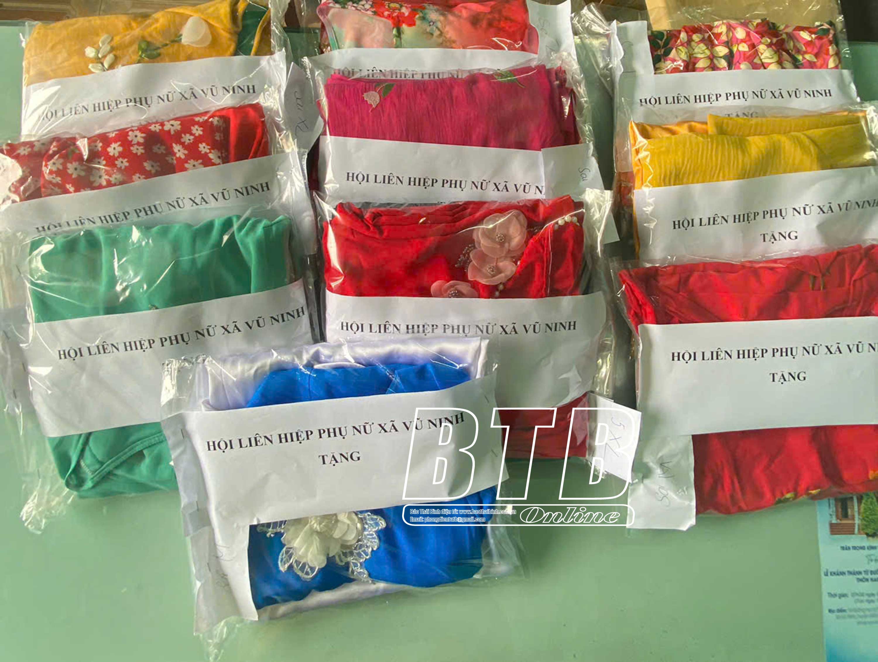 Những bộ áo dài được Hội LHPN xã Vũ Ninh (Kiến Xương) giặt là, gấp cẩn thận trước khi trao tặng cho hội viên, phụ nữ có hoàn cảnh khó khăn.