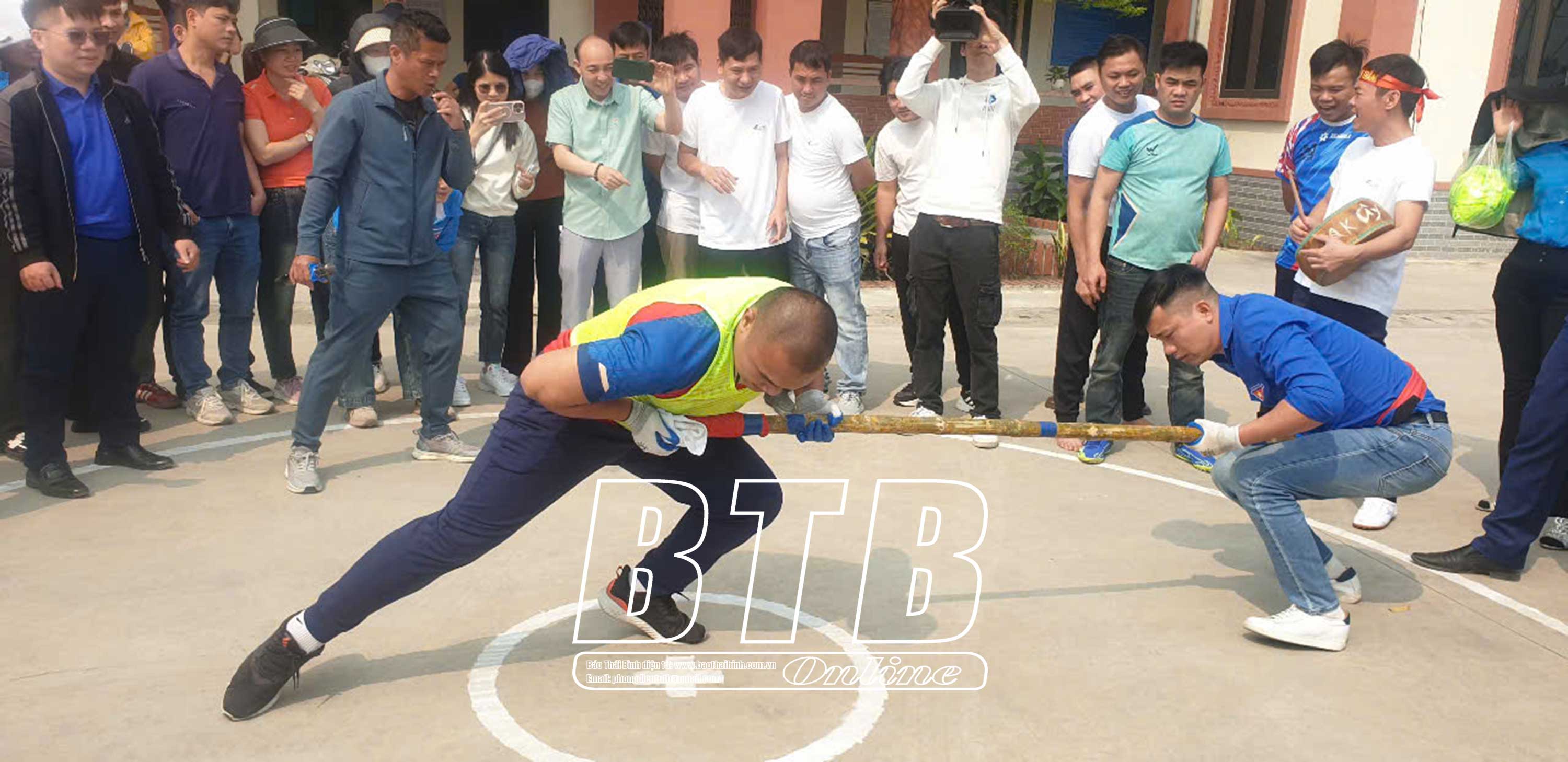Đoàn viên, thanh niên các xã, trấn và công nhân lao động các doanh nghiệp tham gia hoạt động kéo co tại lễ kỷ niệm.