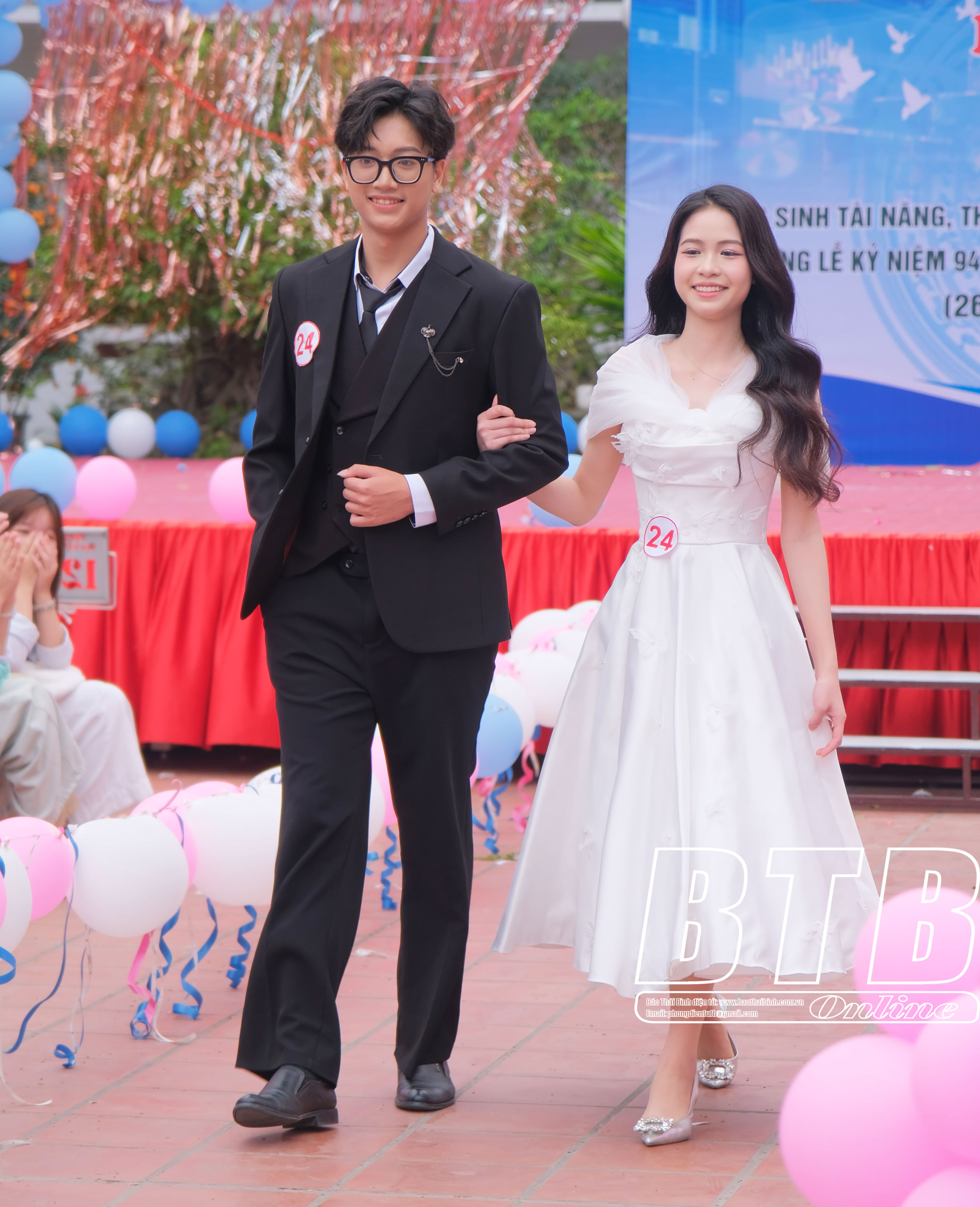 Phần trình diễn catwalk của các thí sinh tại vòng chung kết hội thi học sinh tài năng, thanh lịch.