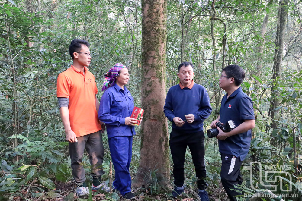 Phóng viên Báo Thái Nguyên, nhà khoa học và chuyên gia chè bên gốc cây chè cổ.