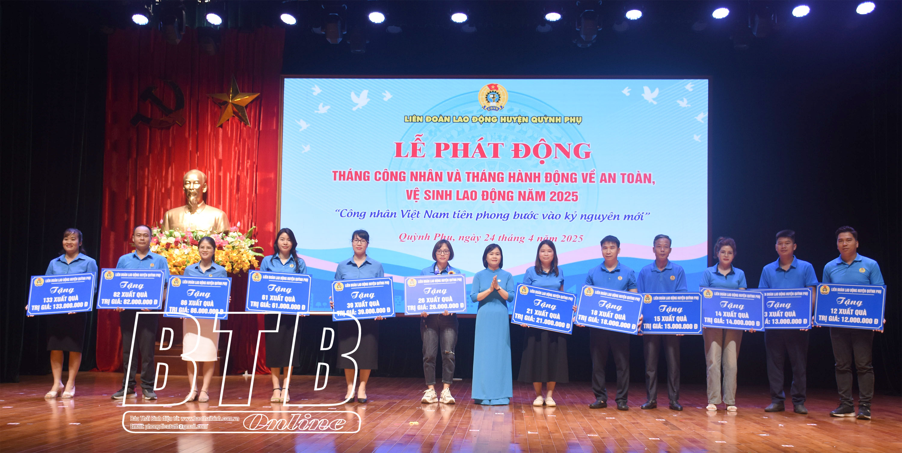 Chiều ngày 24/4, Liên đoàn Lao động (LĐLĐ) huyện Quỳnh Phụ tổ chức lễ phát động Tháng công nhân và Tháng hành động về an toàn vệ sinh lao động năm 2025.