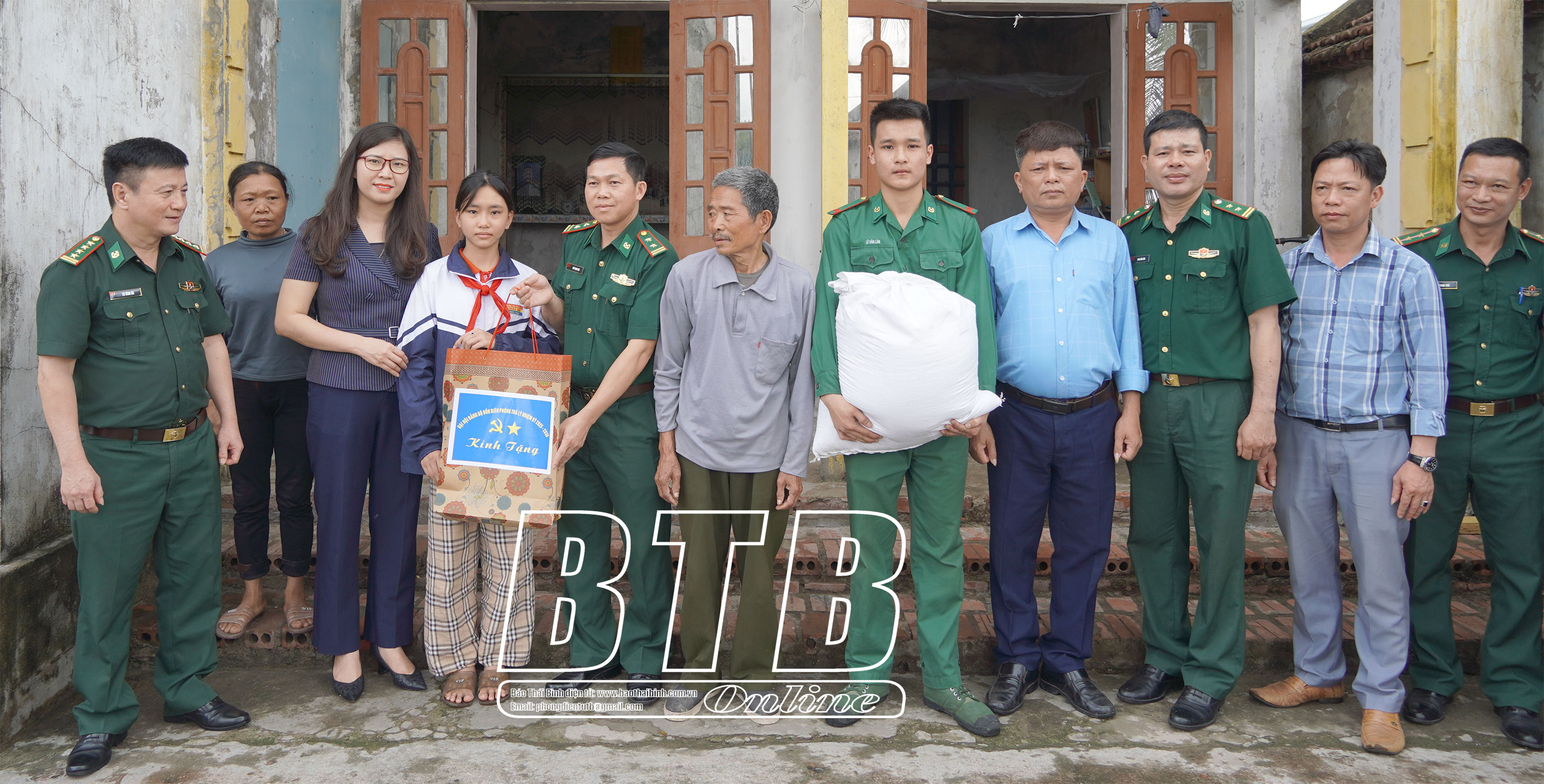 Lãnh đạo Ban Tuyên giáo và Dân vận Tỉnh ủy, Bộ Chỉ huy Bộ đội Biên phòng tỉnh tặng quà em Tạ Thị Mai Oanh, xã Thái Đô (Thái Thụy).