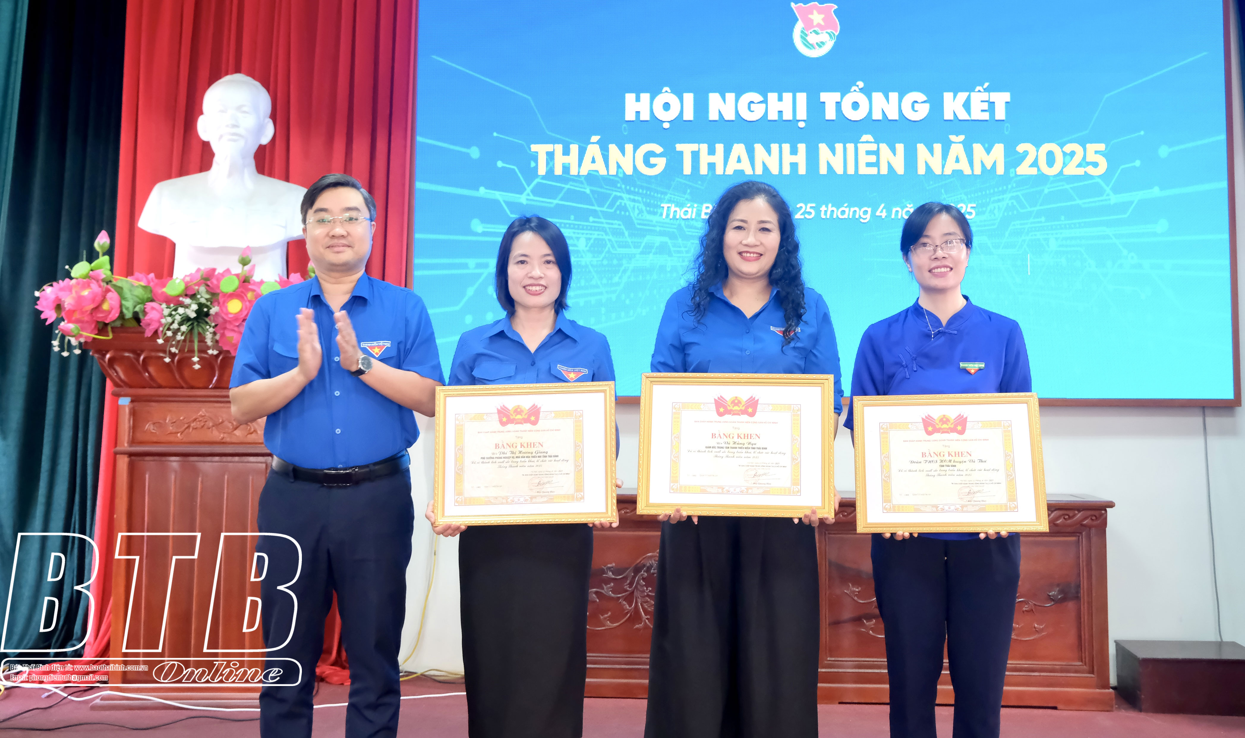 Với chủ đề “Tuổi trẻ Thái Bình xung kích, tình nguyện vì cuộc sống cộng đồng”, Tháng thanh niên năm 2025 đã thu hút đông đảo đoàn viên, thanh niên tham gia thực hiện gần 5.000 công trình, phần việc với tổng trị giá trên 25 tỷ đồng. Các cấp bộ đoàn trong tỉnh đã tổ chức 459 hoạt động tình nguyện tham gia bảo vệ môi trường, ứng phó với biến đổi khí hậu ra quân vệ sinh môi trường; tổ chức xây mới 32 công trình thanh niên ngôi nhà tình nghĩa; bàn giao 5 công trình thanh niên "Điểm phát wifi miễn phí"; khánh thành 32 công trình thanh niên “Thắp sáng đường quê”, “Hàng cây thanh niên”. Cùng với đó tổ chức 702 hoạt động tình nguyện tham gia bảo đảm an sinh xã hội; trao trên 3.990 suất quà cho gia đình chính sách, cựu thanh niên xung phong, người có công với cách mạng; trao trên 2.570 suất quà, 350 suất học bổng cho các em học sinh nghèo vượt khó vươn lên trong học tập. Toàn tỉnh đã thành lập, duy trì hoạt động của 686 đội hình thanh niên xung kích "Bình dân học vụ số” và kết nạp trên 10.200 đoàn viên mới.Các cá nhân nhận bằng khen của Trung ương Đoàn TNCS Hồ Chí Minh Việt Nam.