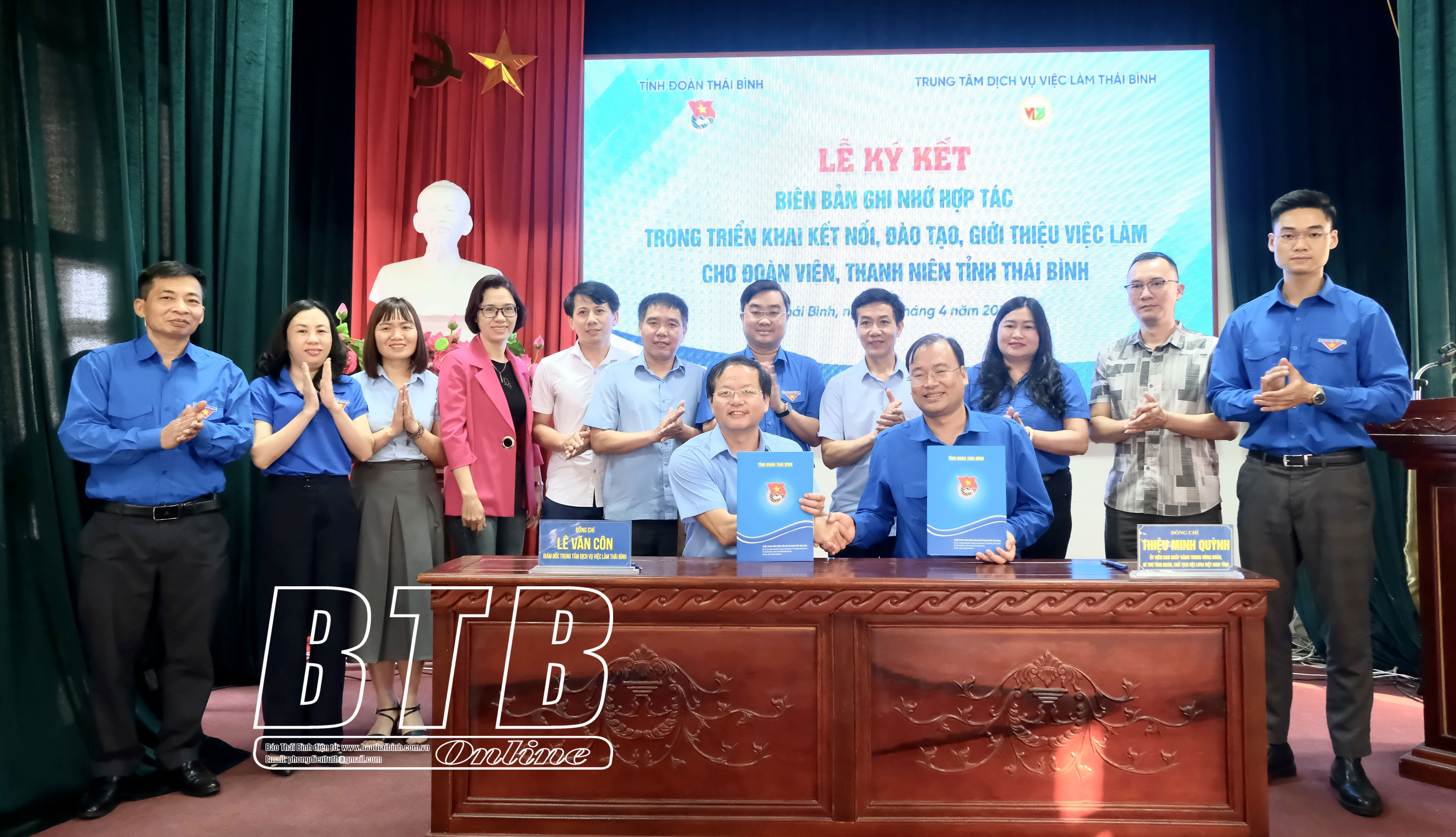 Lễ ký kết biên bản ghi nhớ hợp tác giữa Tỉnh đoàn và Trung tâm dịch vụ việc làm Thái Bình.