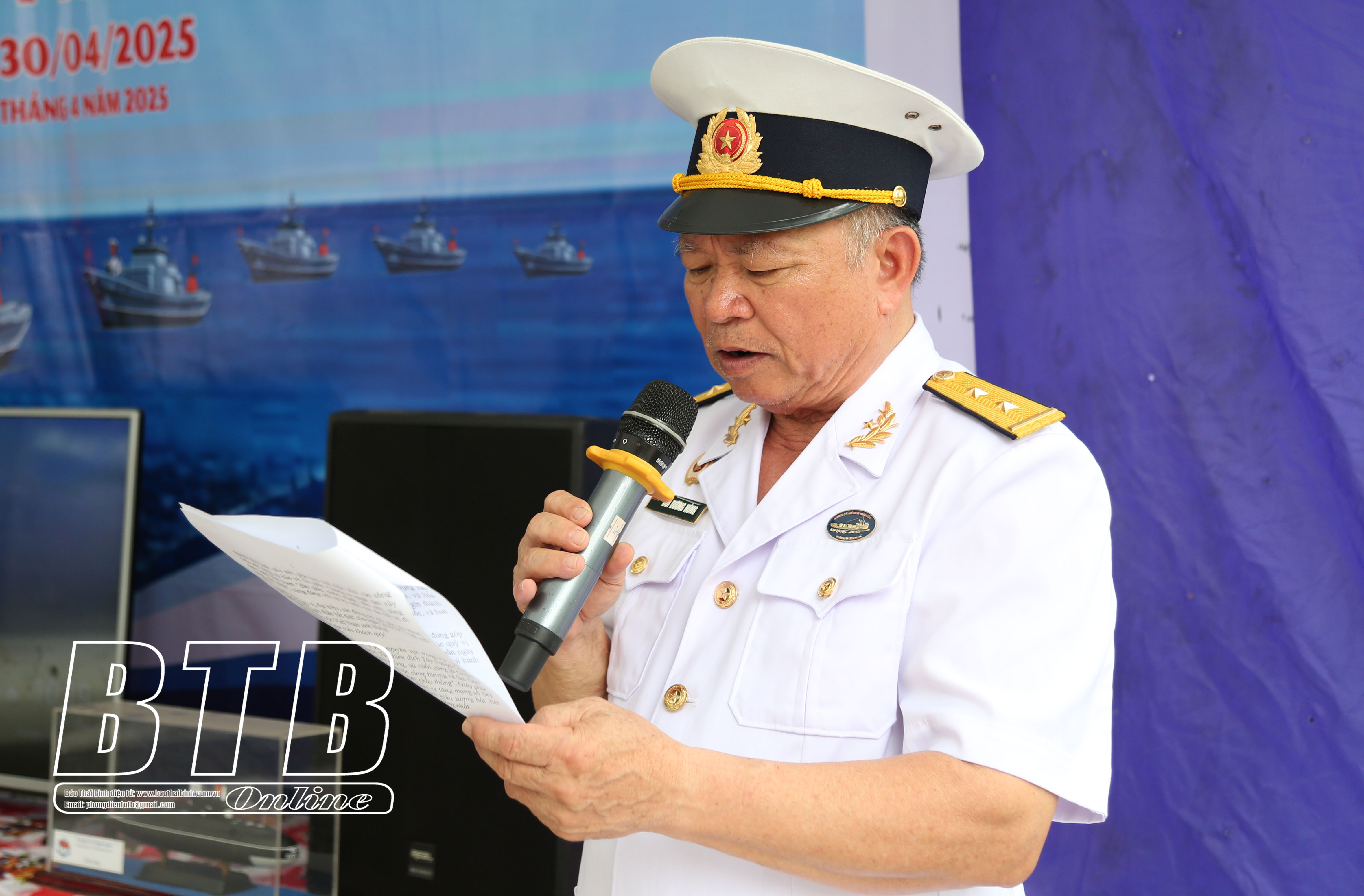 Đại diện Hội Truyền thống đường Hồ Chí Minh trên biển tỉnh Thái Bình đọc diễn văn ôn lại truyền thống.
