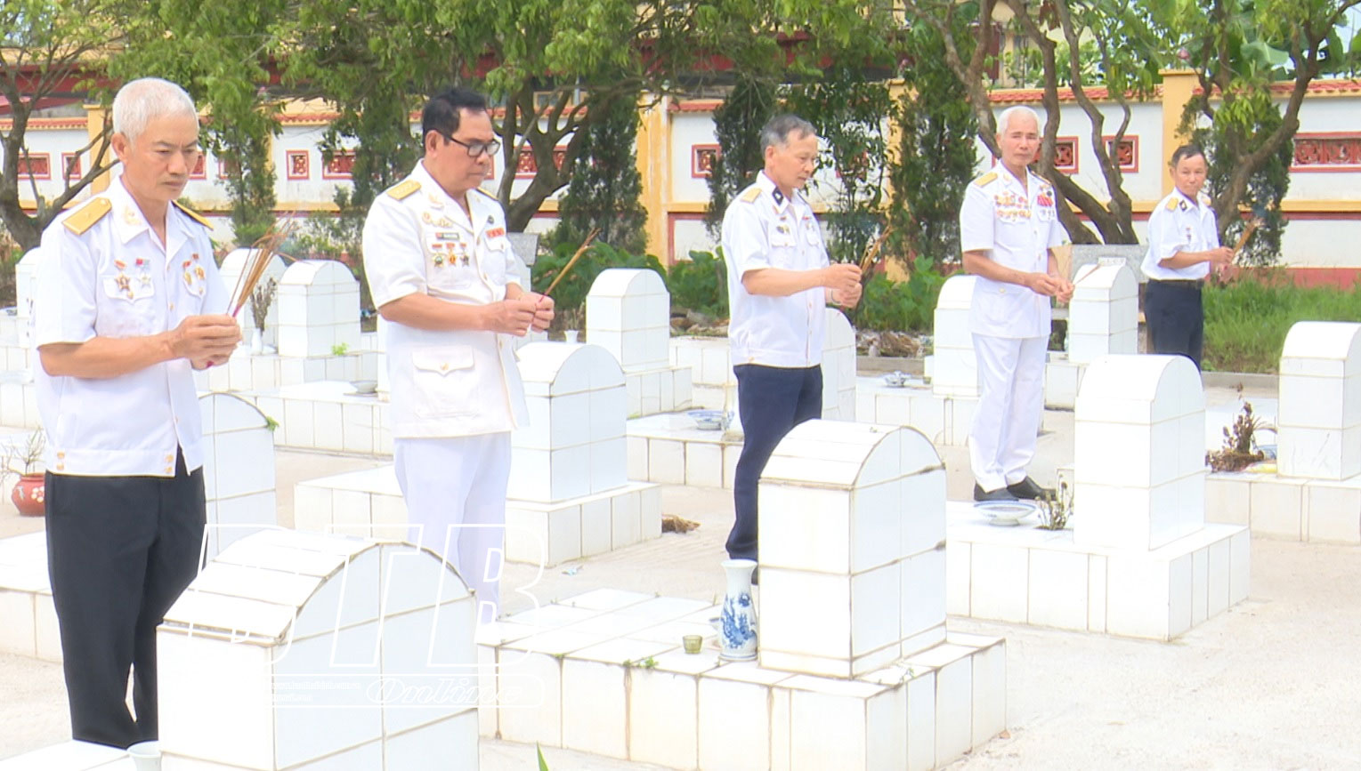Các đại biểu dâng hương tưởng niệm các anh hùng liệt sĩ tại Nghĩa trang liệt sĩ xã Duy Nhất (Vũ Thư).