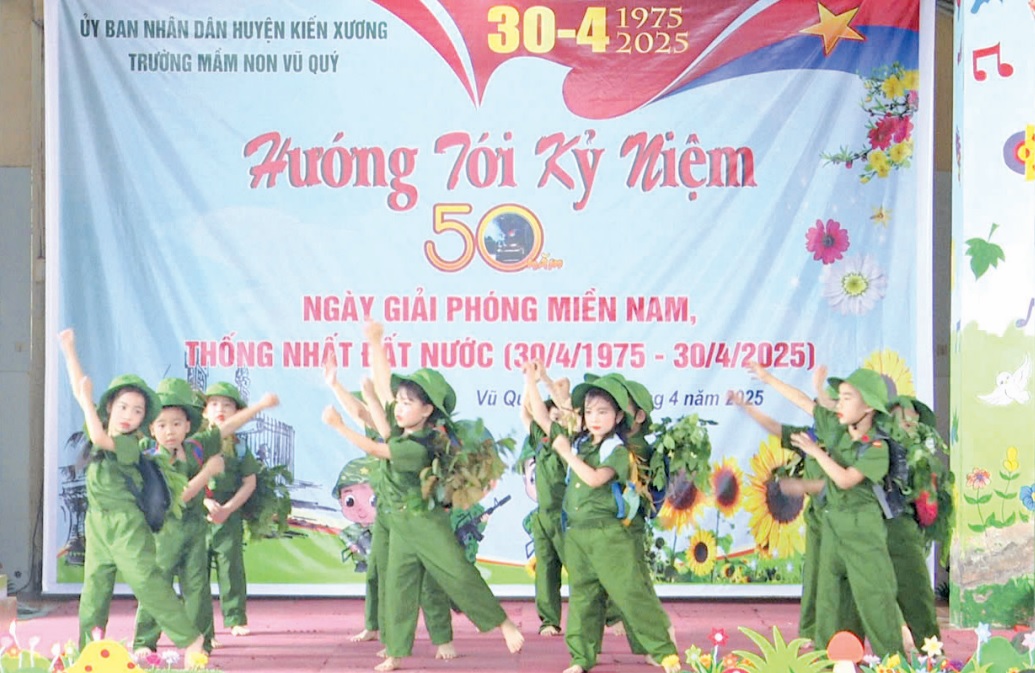 Bà Ngô Thị Liên, Hiệu trưởng Trường Tiểu học và THCS Vũ Quý chia sẻ: Chúng tôi xác định giáo dục truyền thống là nhiệm vụ xuyên suốt, nhất là trong dịp lễ trọng đại này, do đó đã tổ chức nhiều hoạt động ngoại khóa phong phú như: nói chuyện truyền thống trong giờ chào cờ, mời cựu chiến binh đến lớp học chia sẻ, tổ chức các cuộc trao đổi giữa học sinh và cựu chiến binh cũng như thi múa hát, biểu diễn văn nghệ về chiến dịch Hồ Chí Minh lịch sử. Đặc biệt, hoạt động xếp hình biểu tượng “50 năm chiến thắng” đã trở thành điểm nhấn ấn tượng, mang lại sự hứng khởi và khơi dậy niềm tự hào sâu sắc trong các em học sinh.
