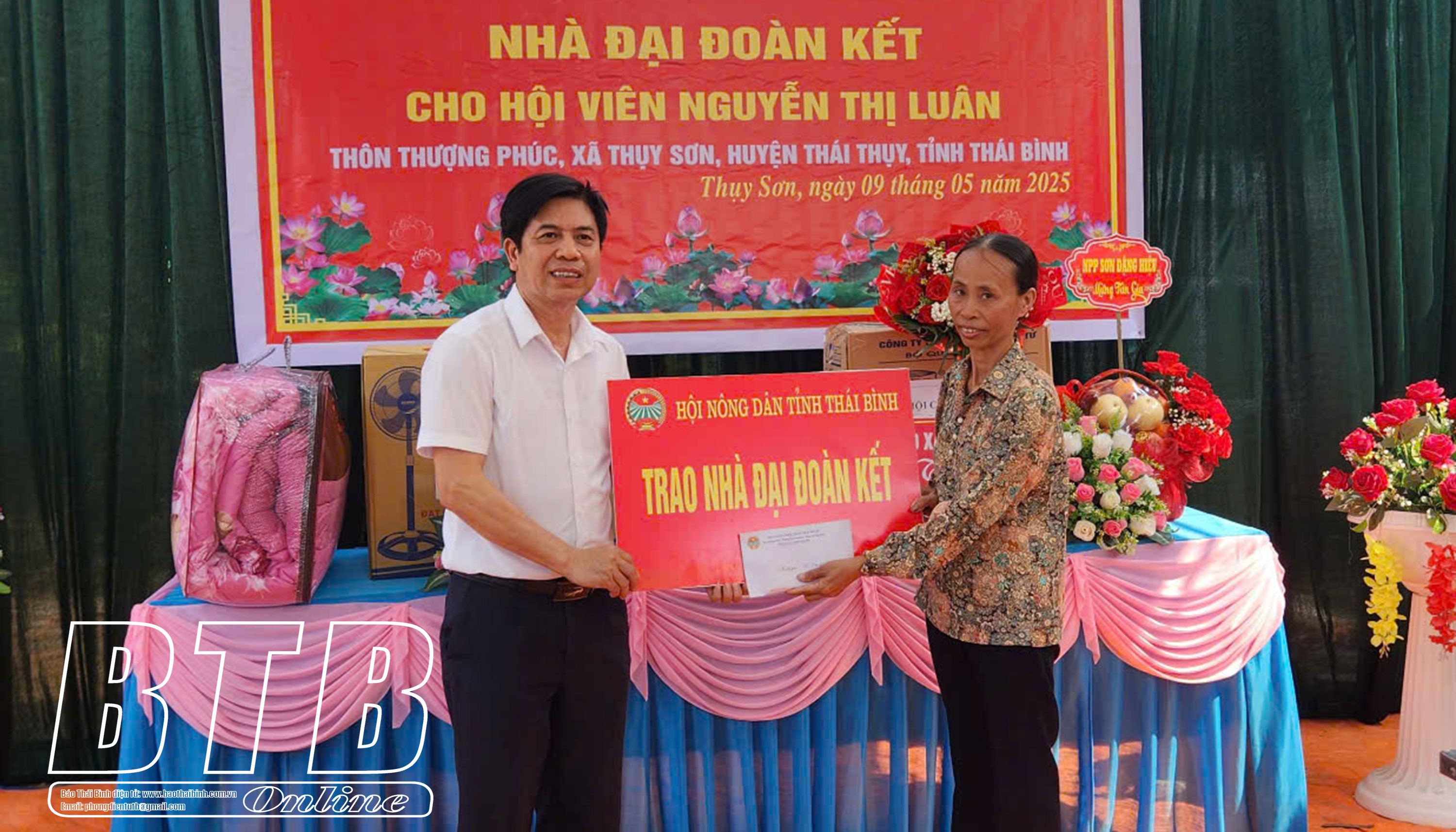 Lãnh đạo Hội Nông dân tỉnh Thái Bình trao kinh phí hỗ trợ xây nhà cho bà Nguyễn Thị Luân.