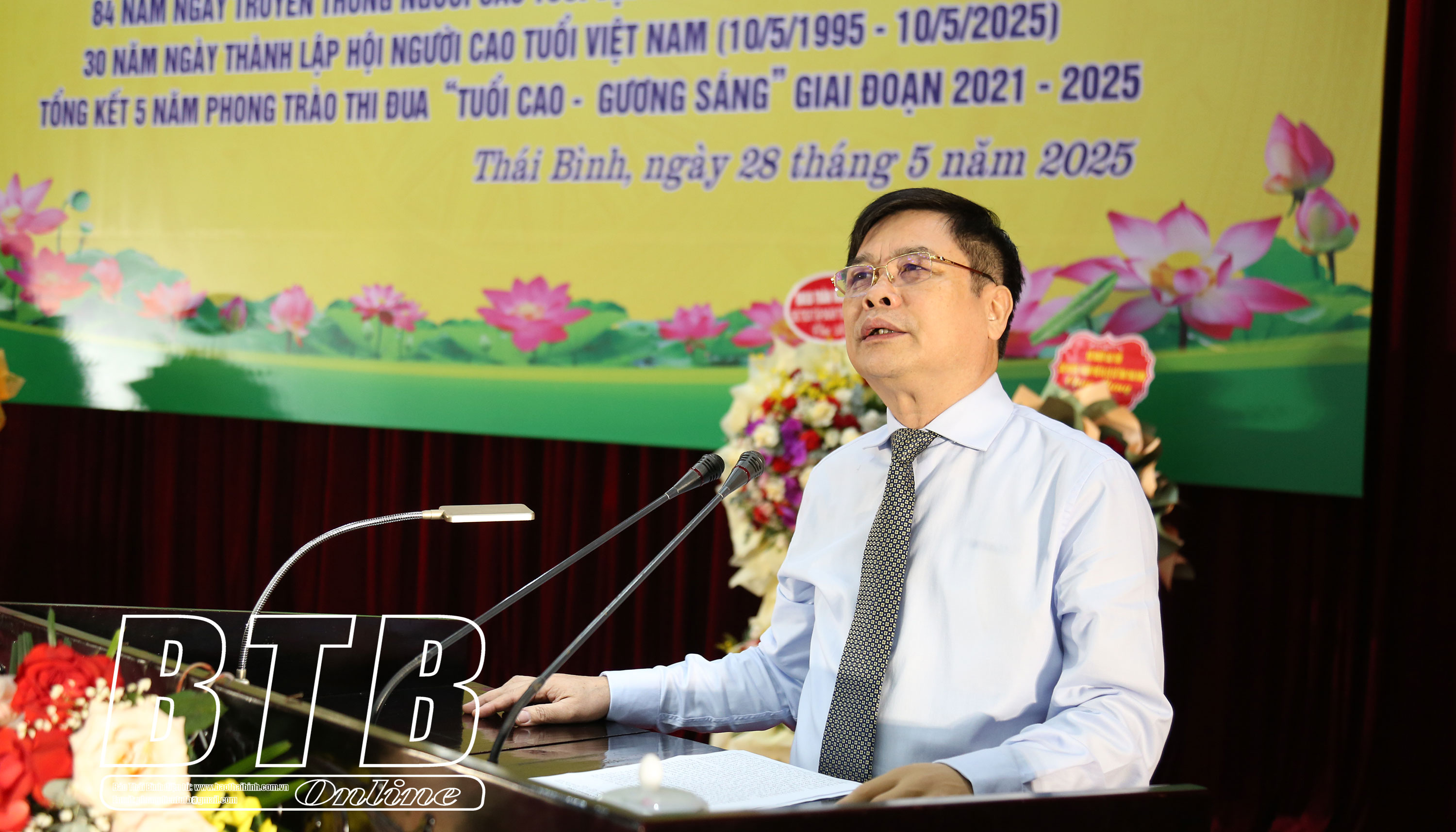 Phát biểu tại buổi lễ, đồng chí Phó Chủ tịch UBND tỉnh đề nghị các cấp hội NCT trong tỉnh phát huy truyền thống tốt đẹp của NCT Việt Nam, tiếp tục triển khai thực hiện có hiệu quả phong trào thi đua yêu nước "Tuổi cao - Gương sáng" ở các cấp hội bằng nhiều hoạt động cụ thể, nội dung thiết thực; phát huy tiềm năng thế mạnh, kinh nghiệm và bản lĩnh chính trị của người cao tuổi trong kỷ nguyên mới. Đề cao trách nhiệm của NCT trong việc giáo dục đạo đức cách mạng, giáo dục truyền thống văn hóa, lịch sử dân tộc, bồi dưỡng lý tưởng cách mạng cho thế hệ trẻ, bảo vệ đường lối lãnh đạo, nền tảng tư tưởng của Đảng, chủ động đấu tranh phòng, chống tham nhũng, tiêu cực ngay từ cơ sở, tham gia phát triển kinh tế, văn hoá, xã hội, đóng góp tích cực vào thành tích chung của tỉnh. Hội NCT tỉnh chủ động tham mưu đề xuất, phối hợp với các cơ quan có liên quan thực hiện Chiến lược quốc gia về NCT đến năm 2035, tầm nhìn đến năm 2045 và Đề án NCT tham gia đẩy mạnh chuyển đổi số, chuyển đổi xanh, khởi nghiệp và tạo việc làm. Tăng cường công tác kiểm tra, giám sát của tổ chức hội, bảo đảm 100% NCT đủ điều kiện được hưởng đầy đủ các chính sách theo quy định của pháp luật, được chăm sóc sức khỏe, tinh thần, phát huy hết khả năng trên mọi lĩnh vực của đời sống xã hội. Đồng chí cũng đề nghị các cấp ủy Đảng, chính quyền, các sở, ban, ngành của tỉnh thường xuyên quan tâm, tạo điều kiện hỗ trợ hội NCT hoạt động. Cấp uỷ, chính quyền các cấp có các cơ chế, chính sách tăng cường chăm sóc bảo vệ NCT, động viên, khuyến khích, tạo điều kiện để NCT tích cực tham gia phát triển kinh tế - xã hội, chuyển đổi số, chuyển đổi xanh, bảo vệ môi trường và tham gia xây dựng hệ thống chính trị cơ sở vững mạnh.