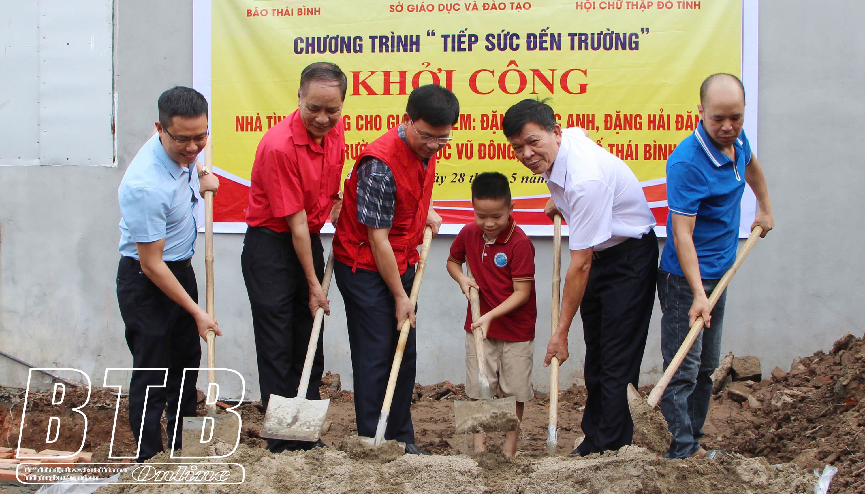 Chiều ngày 28/5, đại diện chương trình “Tiếp sức đến trường” trao 100 triệu đồng để gia đình em Đặng Hải Đăng, ở thôn Đình Phùng, xã Vũ Đông, thành phố Thái Bình khởi công xây nhà mới. Sau gần 8 năm lên sóng, đây là ngôi nhà “Tiếp sức đến trường” thứ 53 được hỗ trợ từ nguồn quỹ của chương trình.