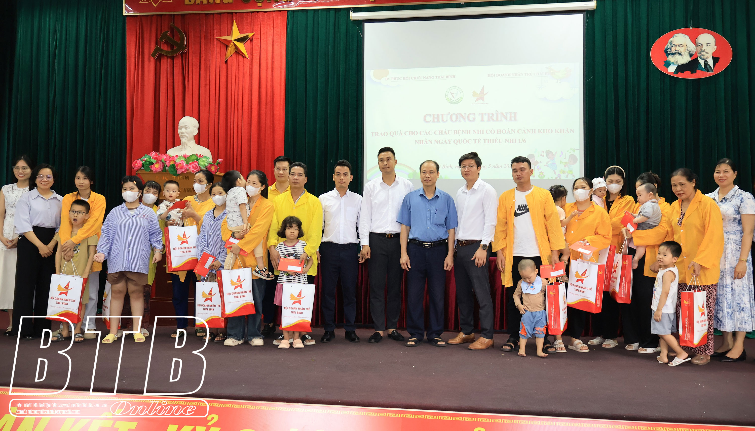 Nhân ngày Quốc tế thiếu nhi 1/6, chiều ngày 30/5, Hội Doanh nhân trẻ Thái Bình đi trao quà cho bệnh nhi tại Bệnh viện Đa khoa Thái Bình, Bệnh viện Nhi Thái Bình và Bệnh viện Phục hồi chức năng Thái Bình.