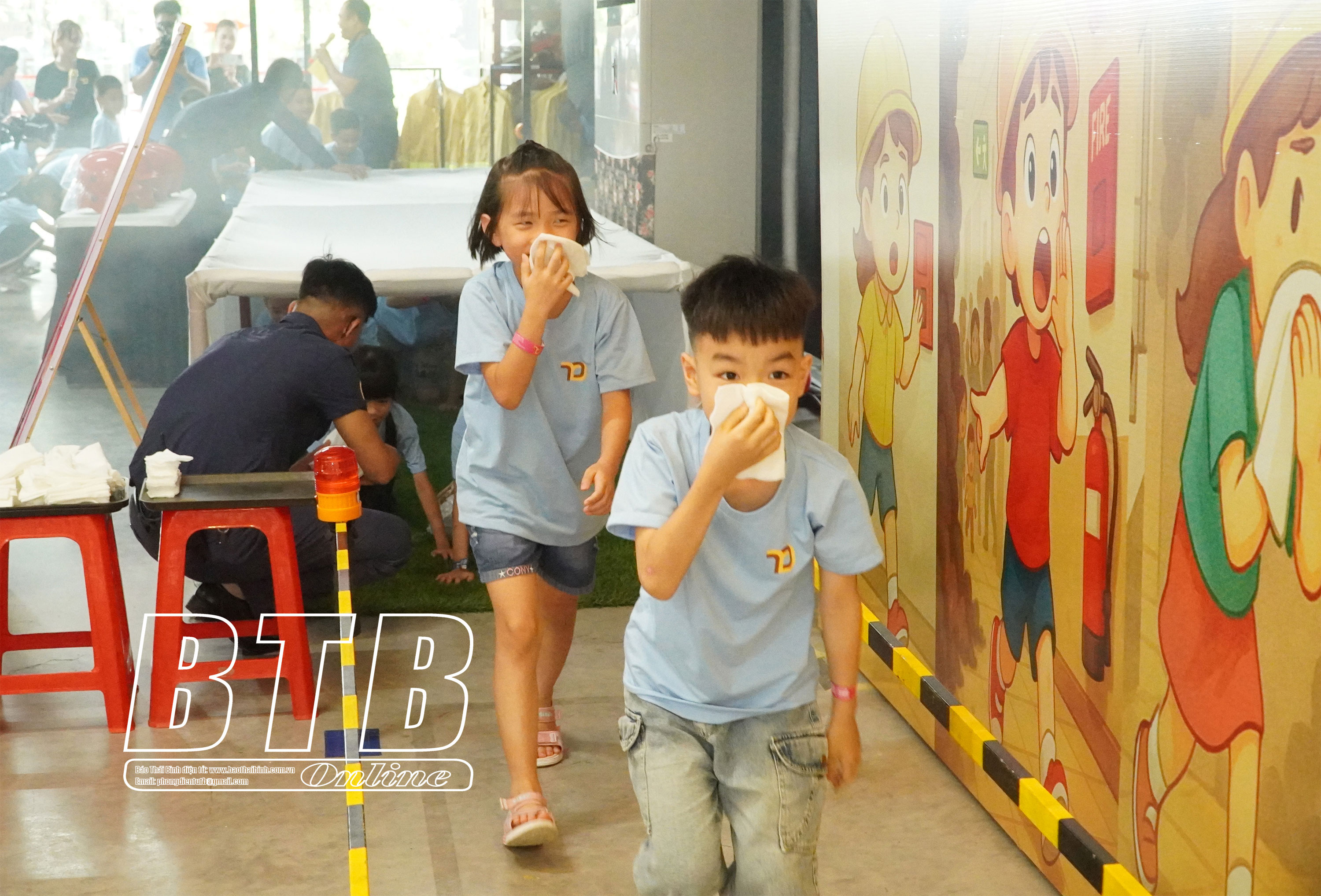 Công ty Tân Đệ hướng dẫn các em nhỏ kỹ năng sống an toàn với tình huống thoát hiểm khỏi đám cháy.