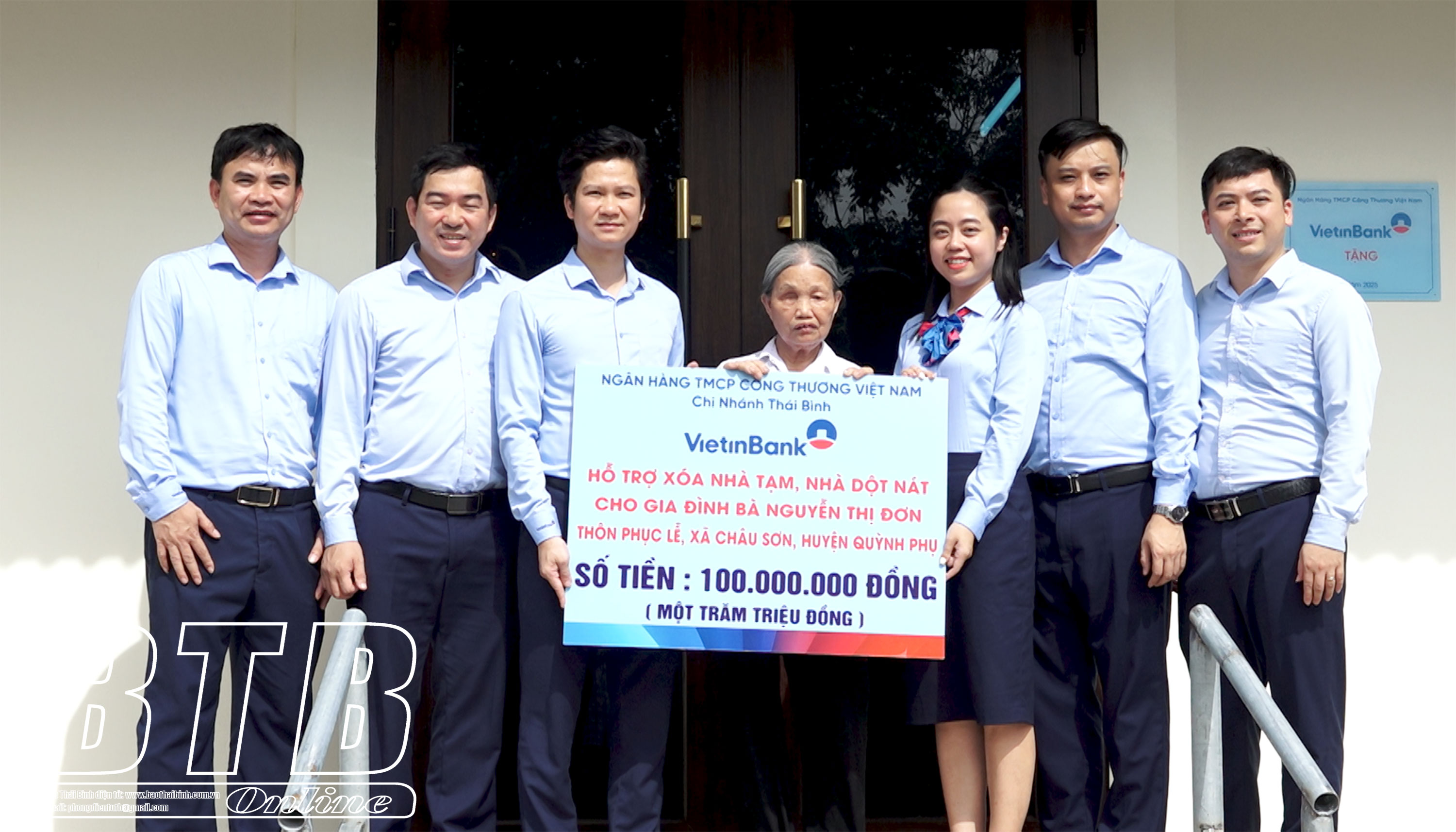 VietinBank Thái Bình hỗ trợ bà Nguyễn Thị Đơn, xã Châu Sơn (Quỳnh Phụ) 100 triệu đồng xây mới lại nhà ở.
