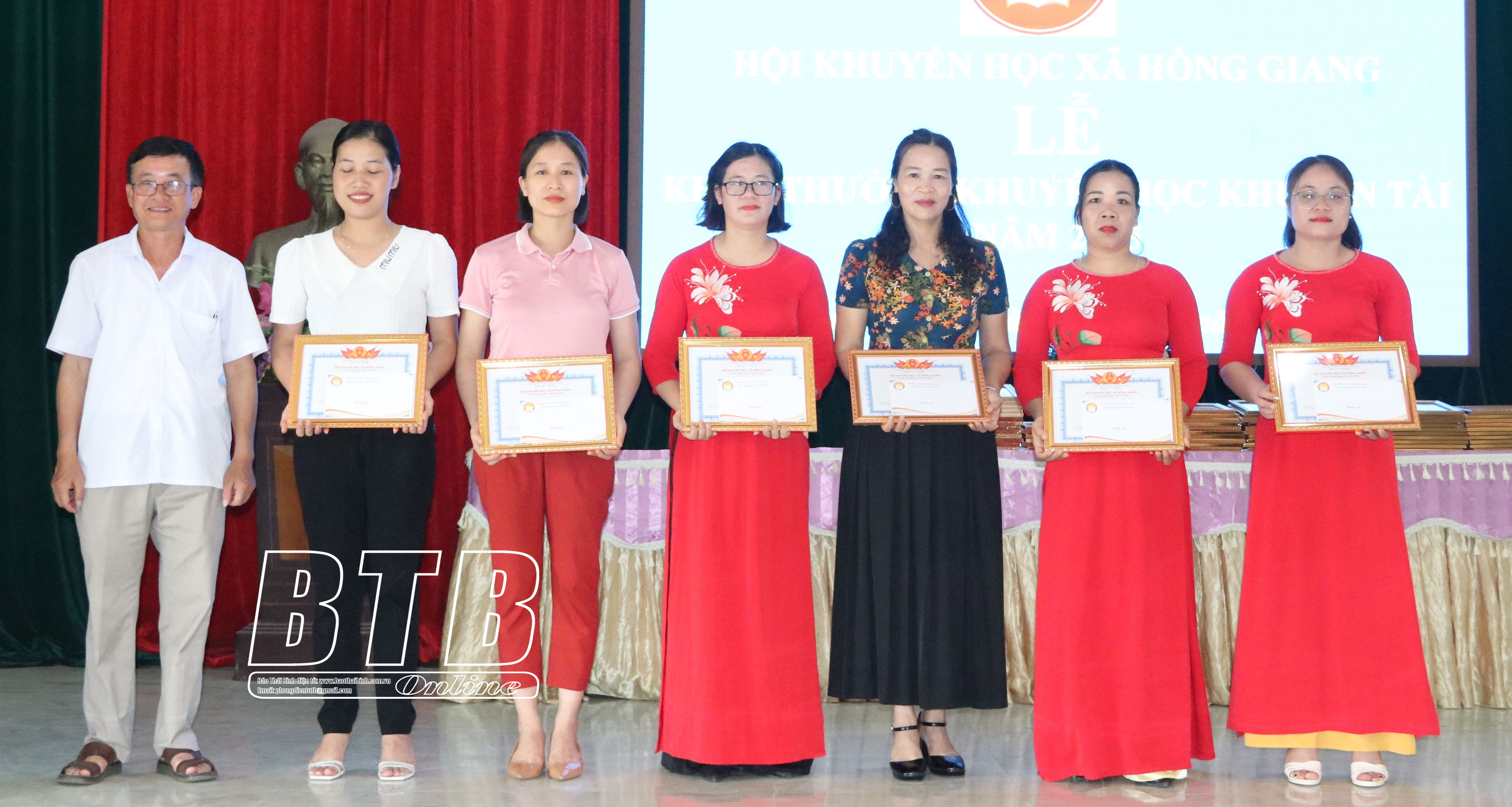 Các em học sinh giỏi các cấp được Hội Khuyến học xã Hồng Giang khen thưởng.