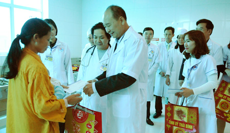 Nhân dịp đón tết cổ truyền của dân tộc, thay mặt lãnh đạo tỉnh, đồng chí Bí thư Tỉnh ủy chúc tập thể cán bộ, y bác sĩ bệnh viện sức khỏe, thành công, hoàn thành xuất sắc nhiệm vụ năm 2017. Đồng chí Bí thư đã đến các khoa thăm hỏi, động viên tặng quà chúc tết các bệnh nhân đang điều trị tại bệnh viện.