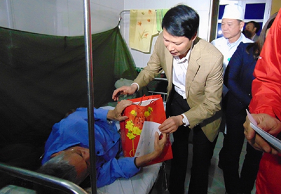 Lãnh đạo huyện Đông Hưng tới thăm, tặng quà các bệnh nhân đang điều trị tại Bệnh viện Đa khoa Đông Hưng.