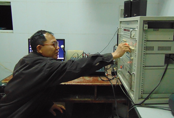 Ông Nguyễn Văn Thái, Trưởng đài Truyền thanh xã Nguyên Xá (Đông Hưng) cần mẫn trực bên hệ thống phát thanh.