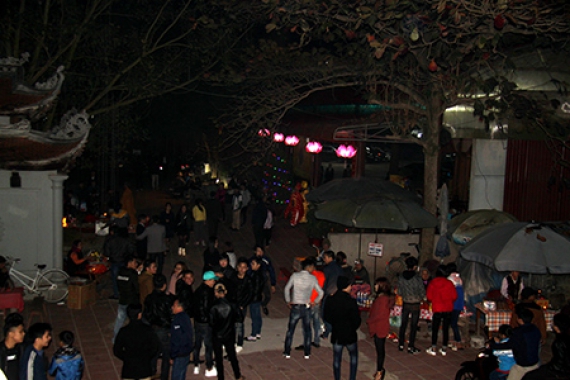 Nhiều bạn trẻ và du khách thập phương về Đền Tiên La đón giao thừa. Ảnh: Tất Đạt.