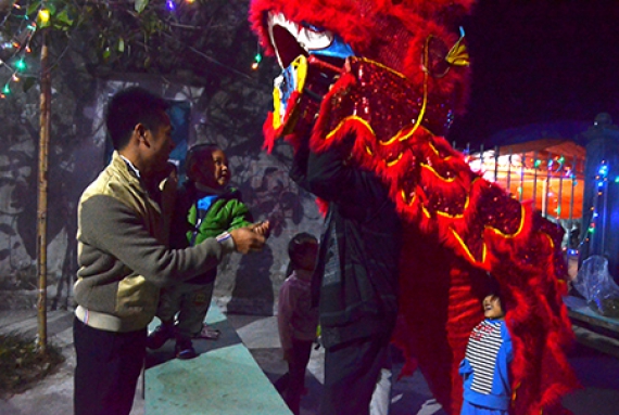 Múa lân trong đêm giao thừa. Ảnh: Phương Chi
