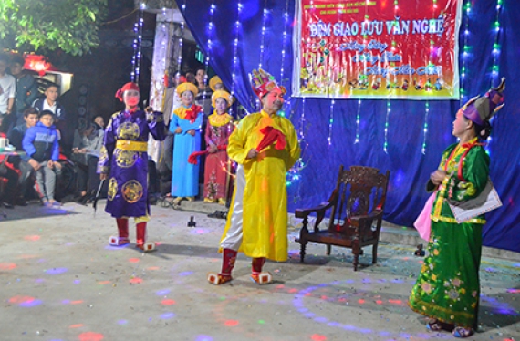 Một tiết mục trong chương trình giao lưu văn nghệ do Chi đoàn Thanh niên thôn Hải Hà, xã Quỳnh Mỹ tổ chức. Ảnh: Phương Chi